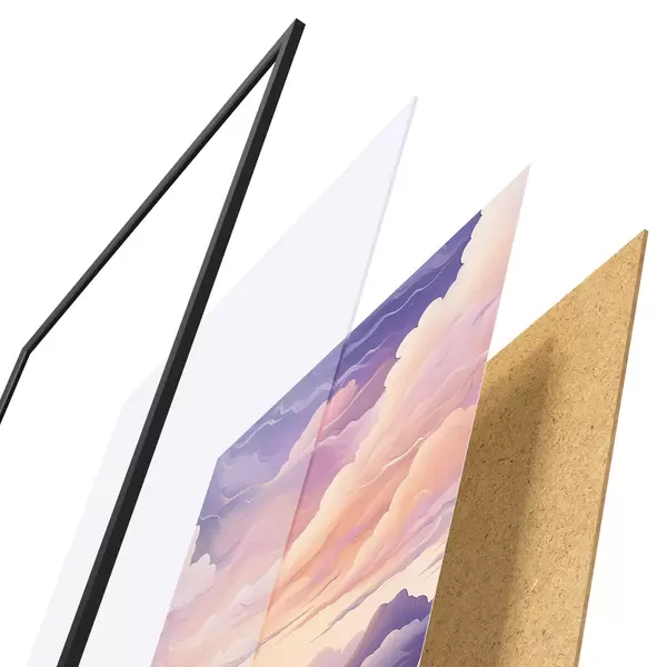 Plakatą sudaro rėmas, pleksiklas, atspausdintas vaizdas ir medžio drožlių plokštės pagrindas. Plakatą galima iš karto pakabinti ant sienos dėl kitoje pusėje esančių laikiklių.