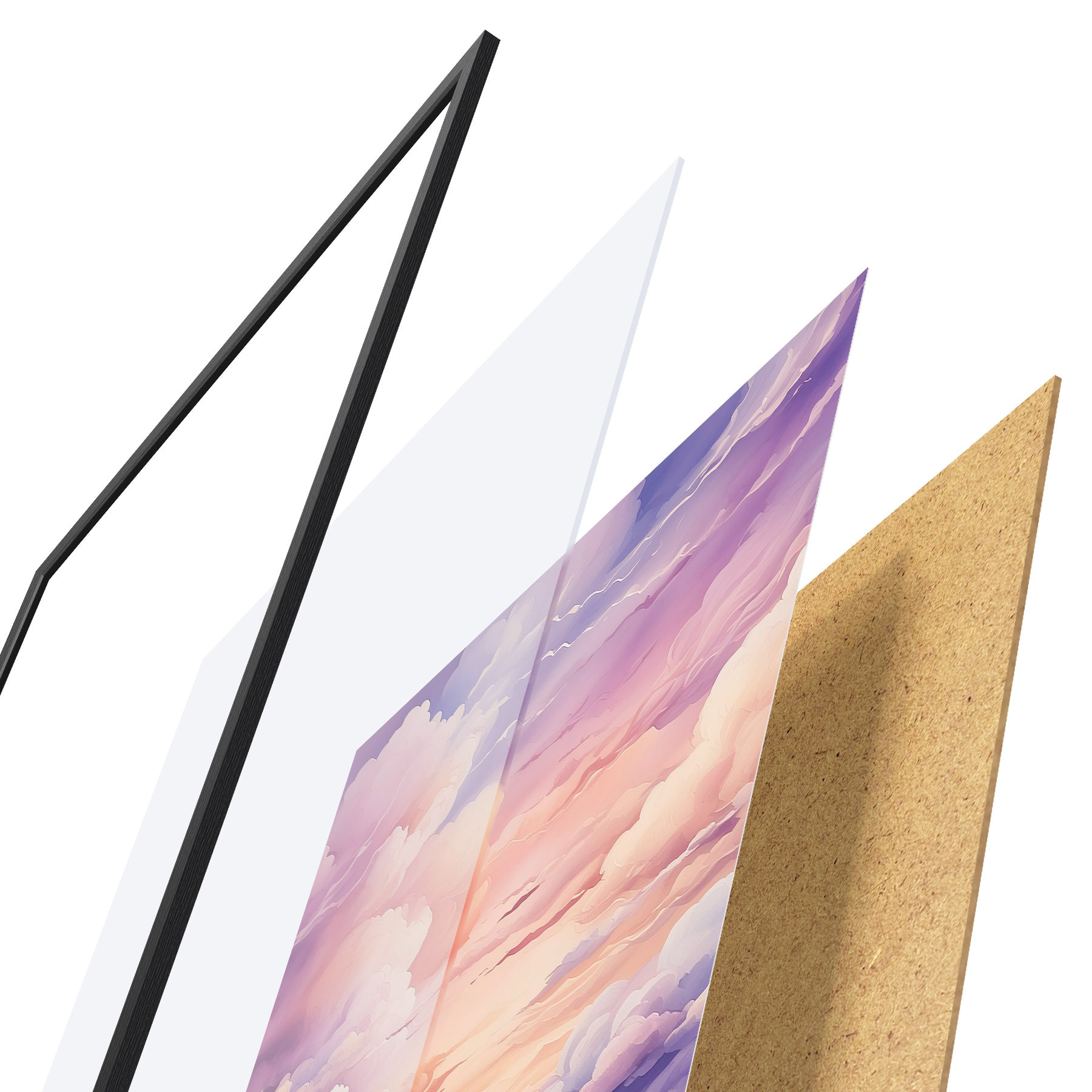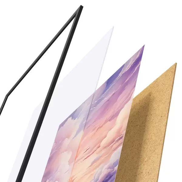 Plakatą sudaro rėmas, pleksiklas, atspausdintas vaizdas ir medžio drožlių plokštės pagrindas. Plakatą galima iš karto pakabinti ant sienos dėl kitoje pusėje esančių laikiklių.