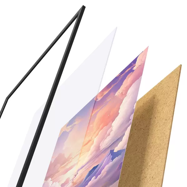Plakatą sudaro rėmas, pleksiklas, atspausdintas vaizdas ir medžio drožlių plokštės pagrindas. Plakatą galima iš karto pakabinti ant sienos dėl kitoje pusėje esančių laikiklių.