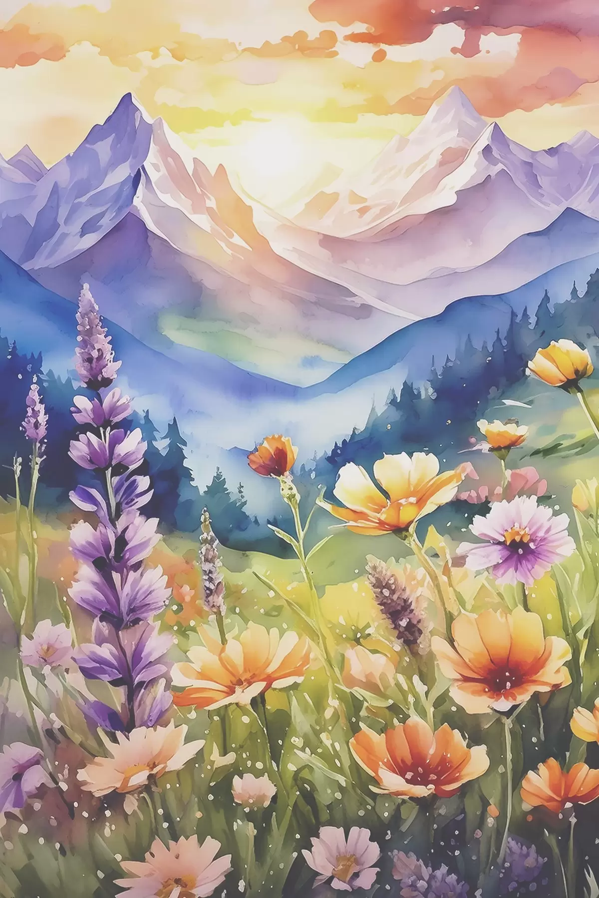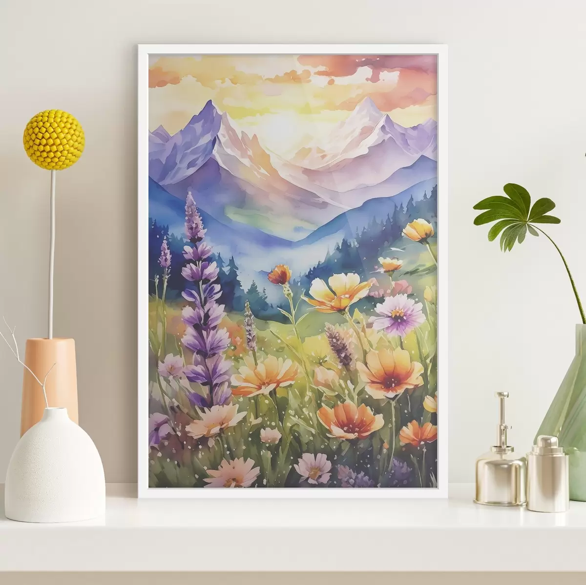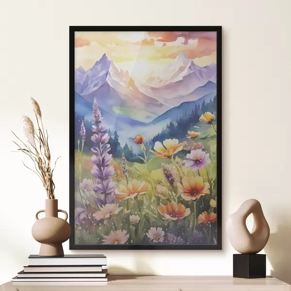 Plakatas Ryškios gėlės po didingais kalnais Ne f38841