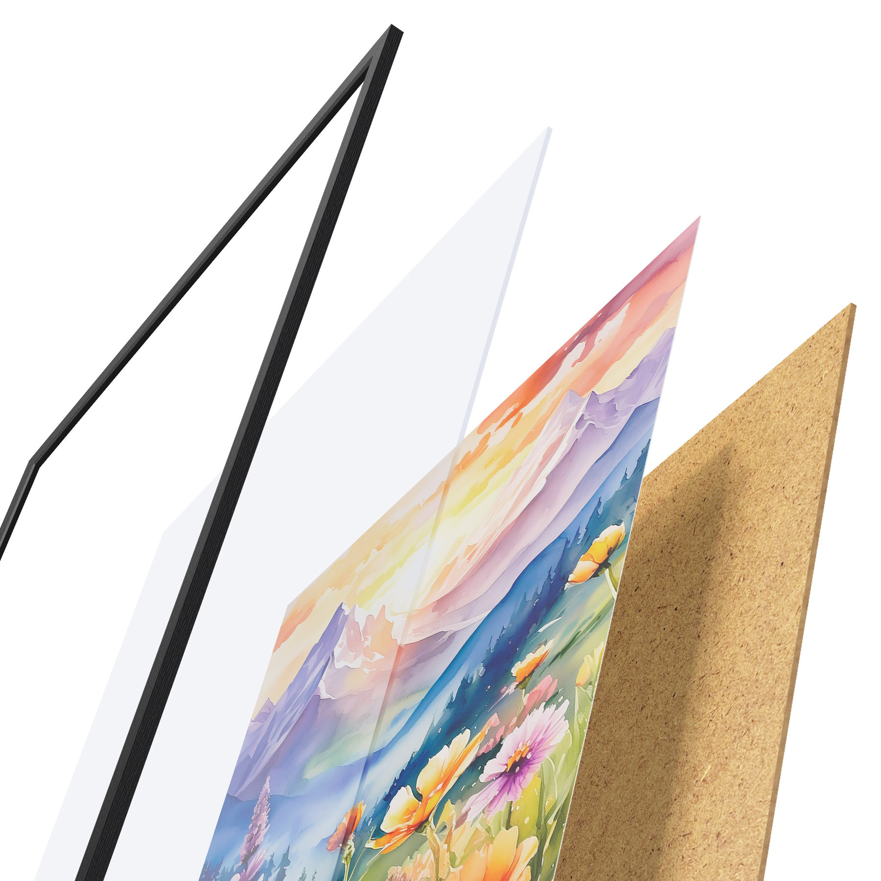 Plakatą sudaro rėmas, pleksiklas, atspausdintas vaizdas ir medžio drožlių plokštės pagrindas. Plakatą galima iš karto pakabinti ant sienos dėl kitoje pusėje esančių laikiklių.