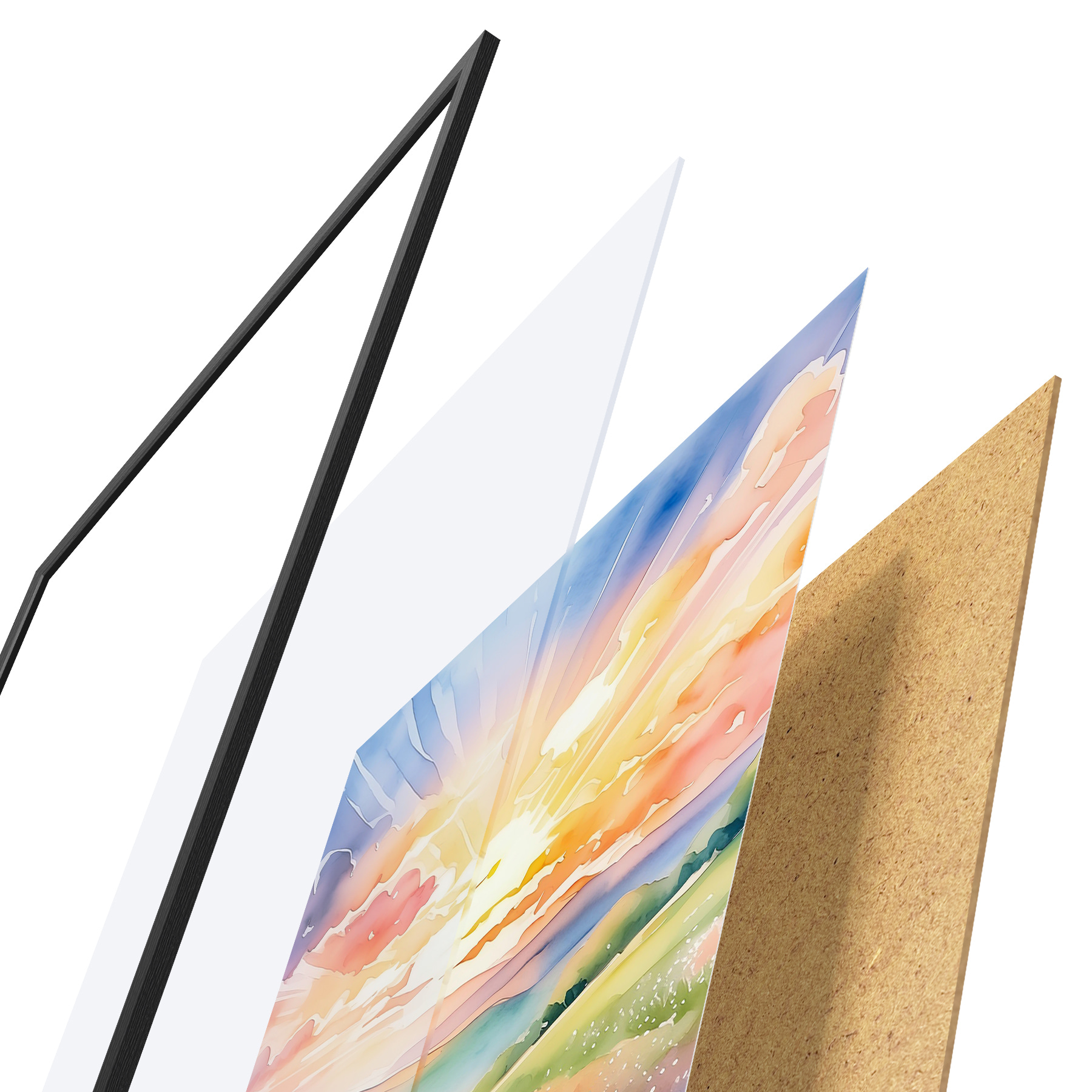 Plakatą sudaro rėmas, pleksiklas, atspausdintas vaizdas ir medžio drožlių plokštės pagrindas. Plakatą galima iš karto pakabinti ant sienos dėl kitoje pusėje esančių laikiklių.