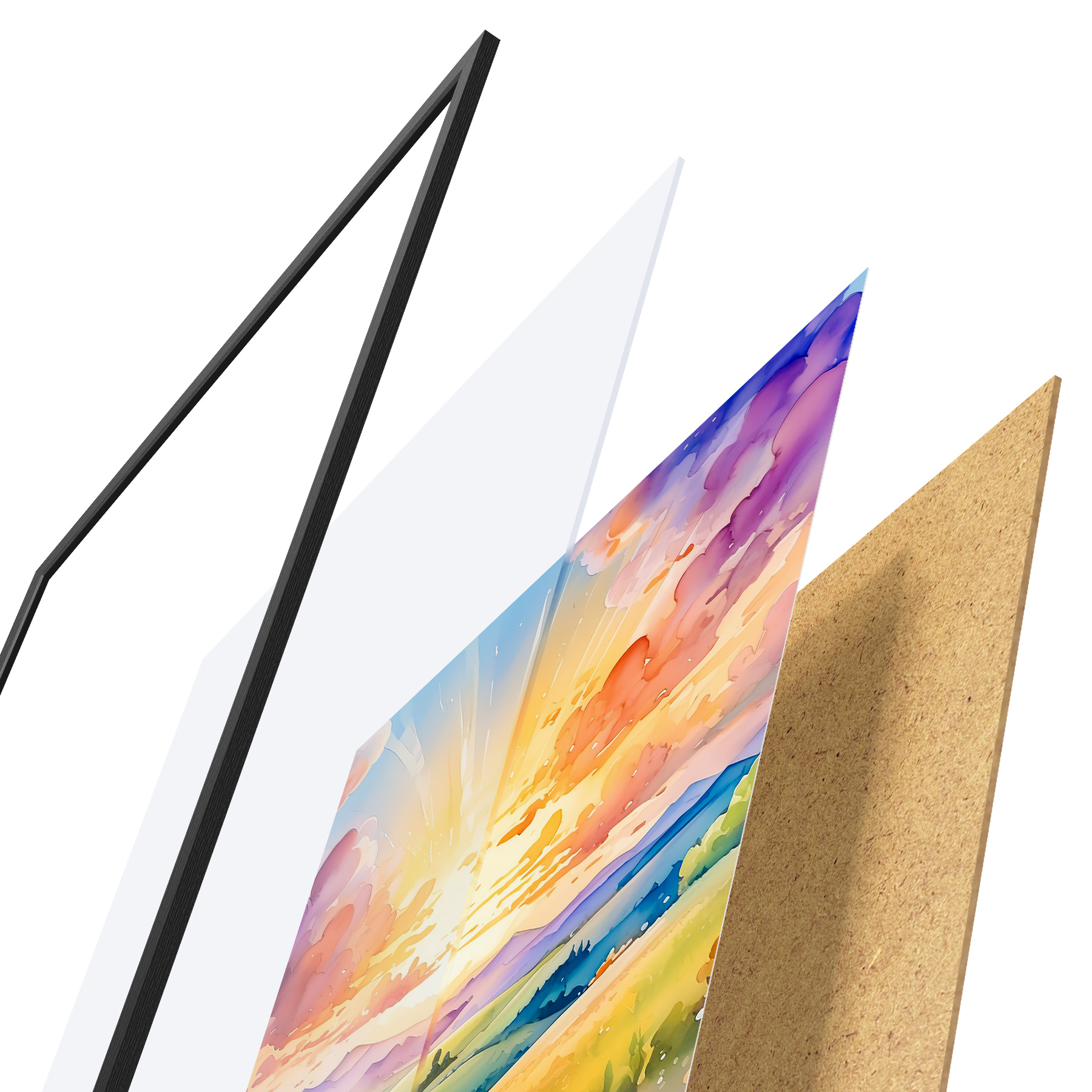 Plakatą sudaro rėmas, pleksiklas, atspausdintas vaizdas ir medžio drožlių plokštės pagrindas. Plakatą galima iš karto pakabinti ant sienos dėl kitoje pusėje esančių laikiklių.