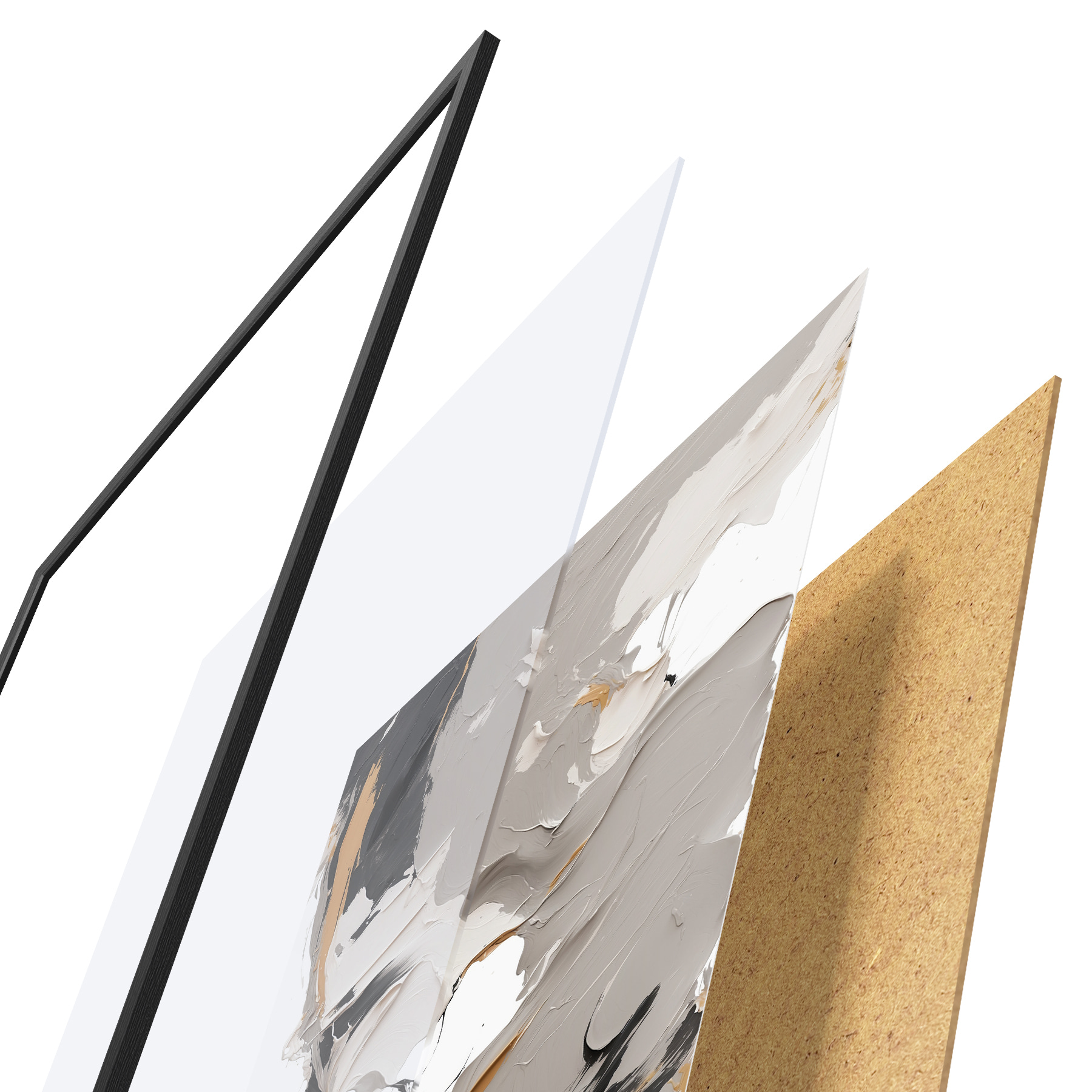 Plakatą sudaro rėmas, pleksiklas, atspausdintas vaizdas ir medžio drožlių plokštės pagrindas. Plakatą galima iš karto pakabinti ant sienos dėl kitoje pusėje esančių laikiklių.