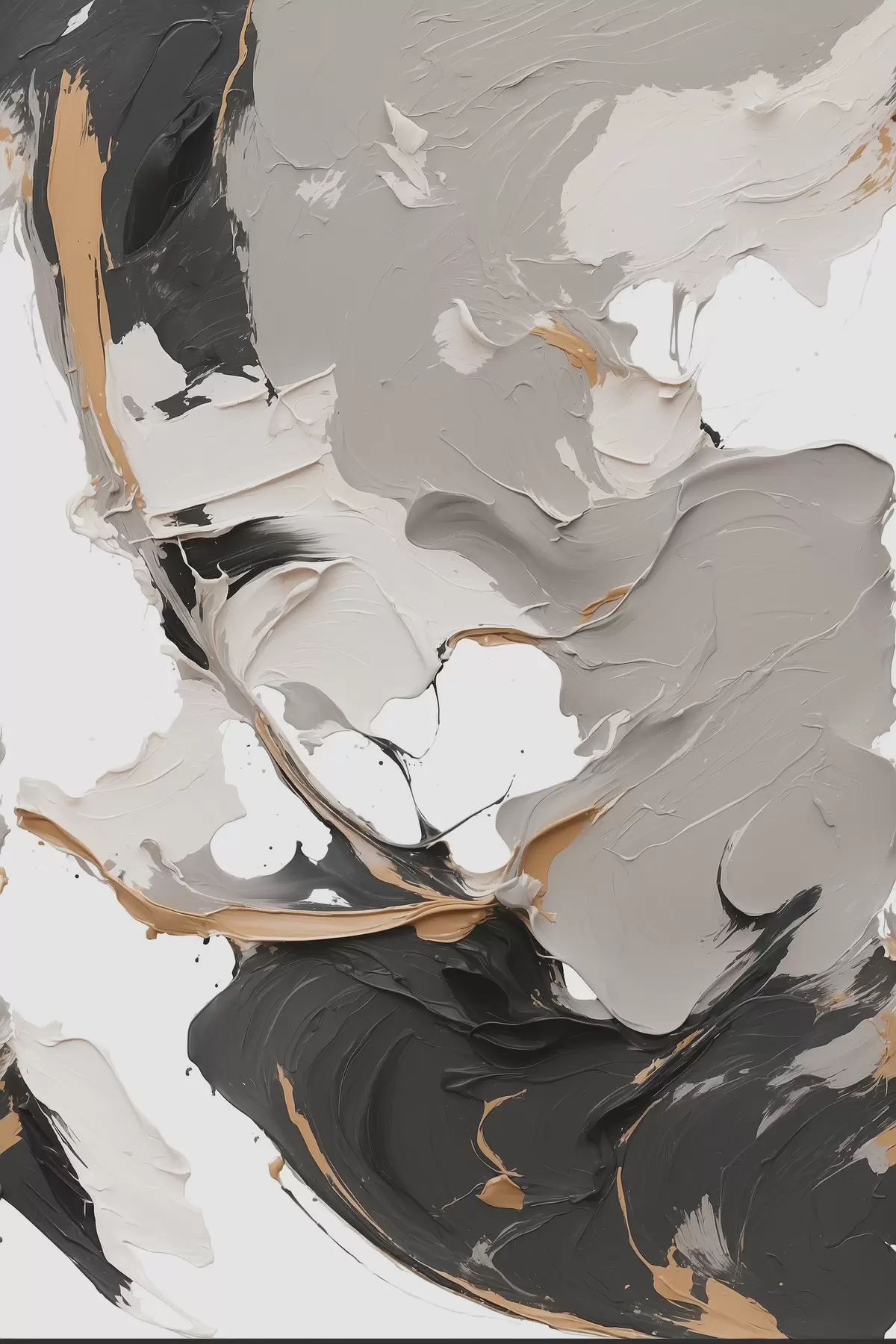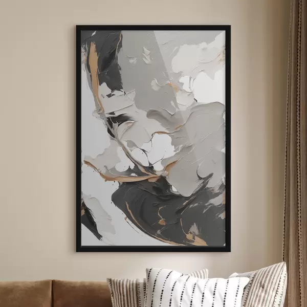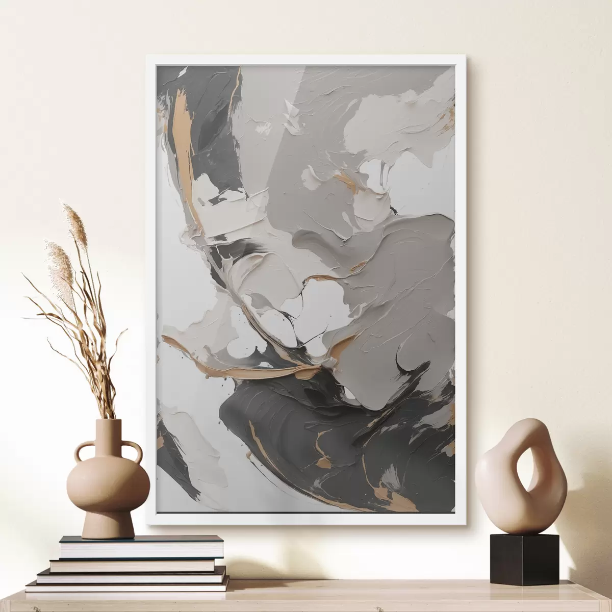 Plakatas Abstrakti tapyba balta ir pilka spalvomis f38855