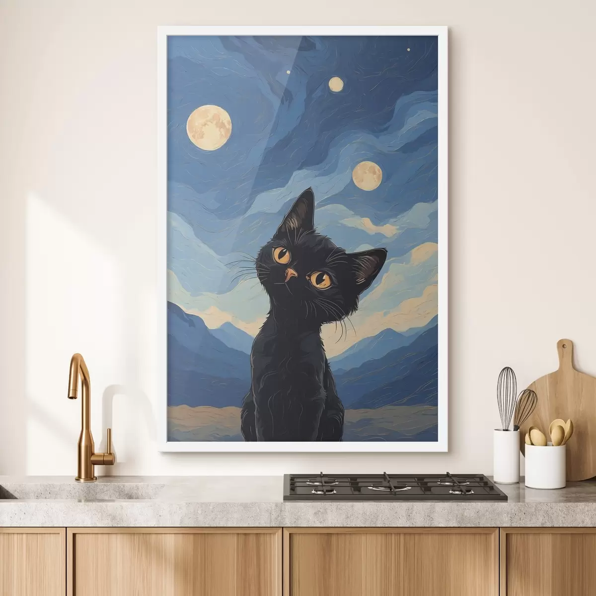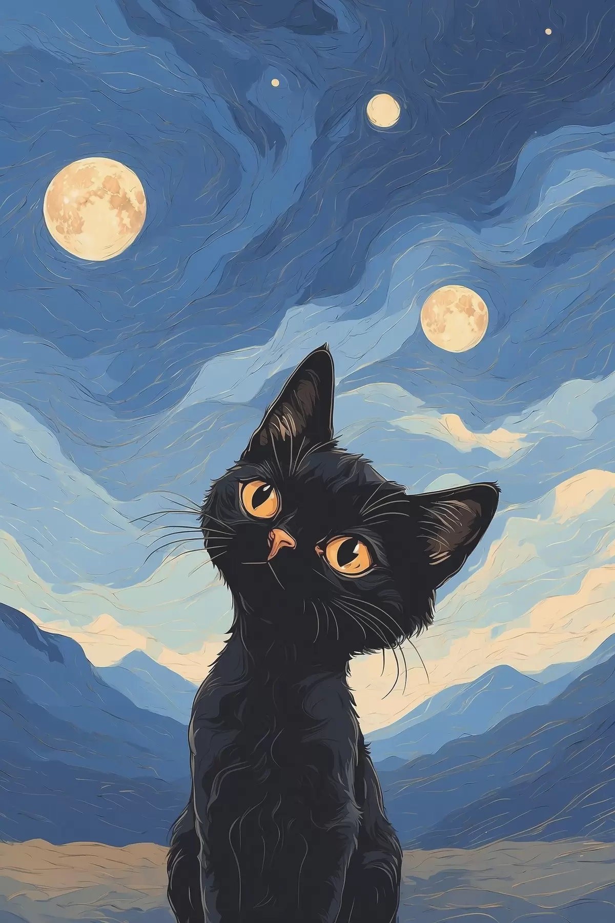 Plakatas Smalsus katinas po žvaigždėtu dangumi Ne f38860
