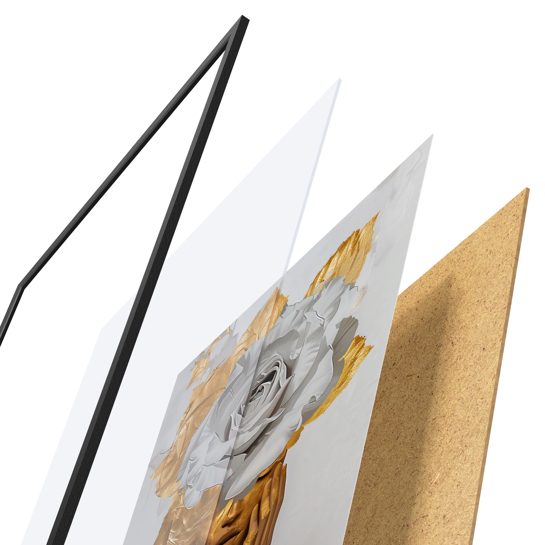 Plakatą sudaro rėmas, pleksiklas, atspausdintas vaizdas ir medžio drožlių plokštės pagrindas. Plakatą galima iš karto pakabinti ant sienos dėl kitoje pusėje esančių laikiklių.