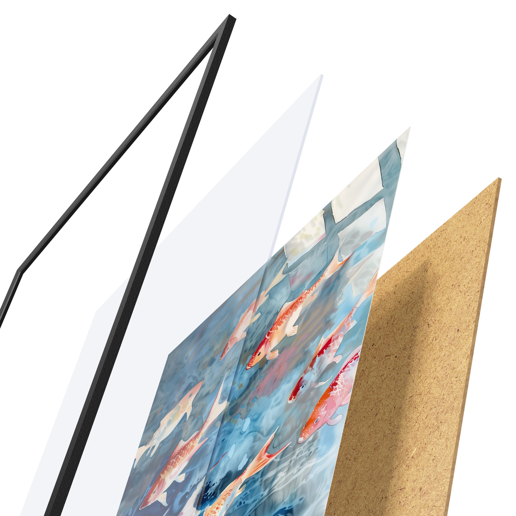 Plakatą sudaro rėmas, pleksiklas, atspausdintas vaizdas ir medžio drožlių plokštės pagrindas. Plakatą galima iš karto pakabinti ant sienos dėl kitoje pusėje esančių laikiklių.
