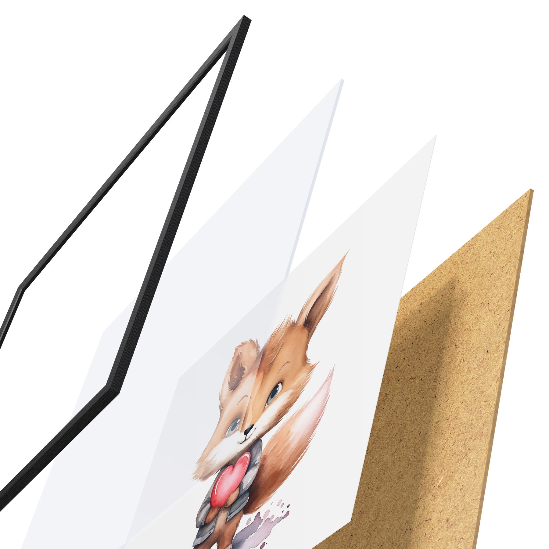 Plakatą sudaro rėmas, pleksiklas, atspausdintas vaizdas ir medžio drožlių plokštės pagrindas. Plakatą galima iš karto pakabinti ant sienos dėl kitoje pusėje esančių laikiklių.