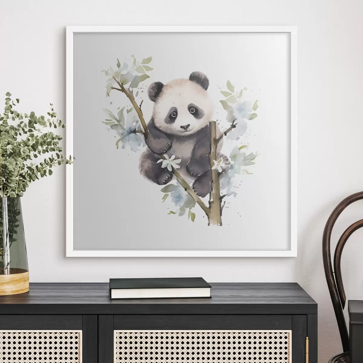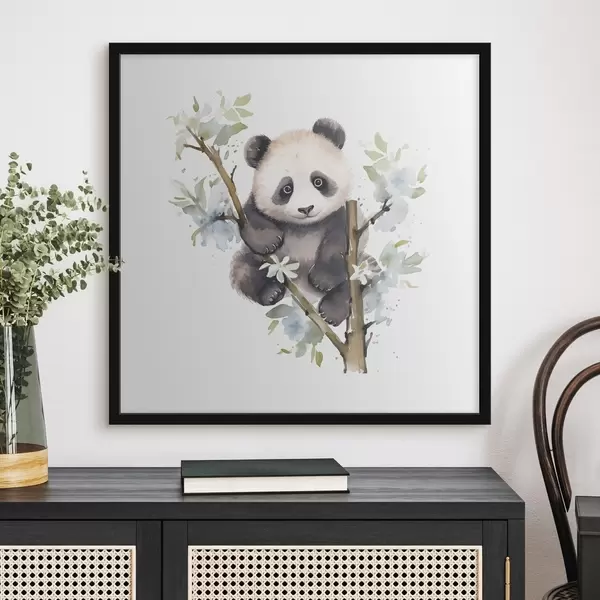 Plakatas Žaisminga panda mėgaujasi pavasario žiedais Ne f38924