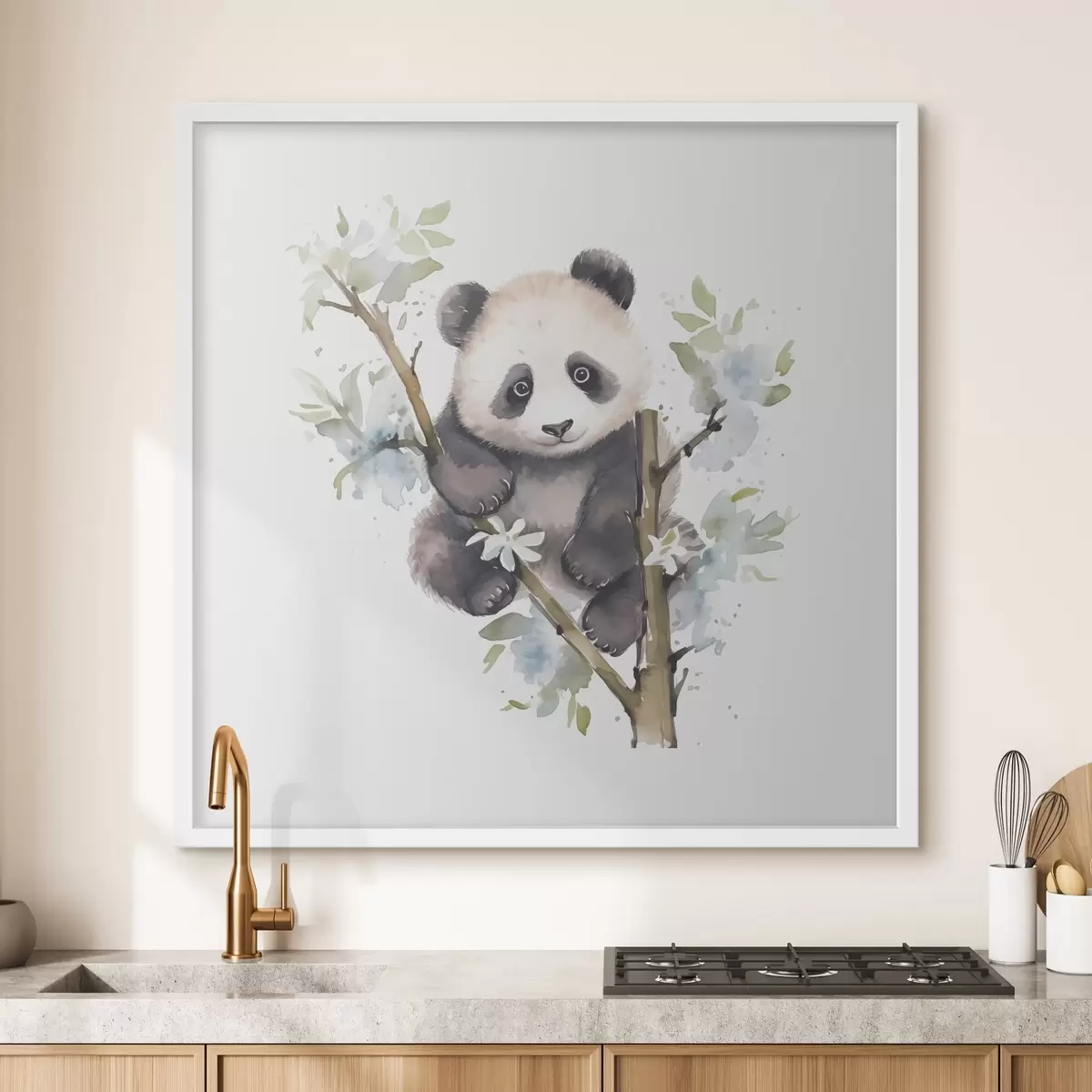 Plakatas Žaisminga panda mėgaujasi pavasario žiedais f38924