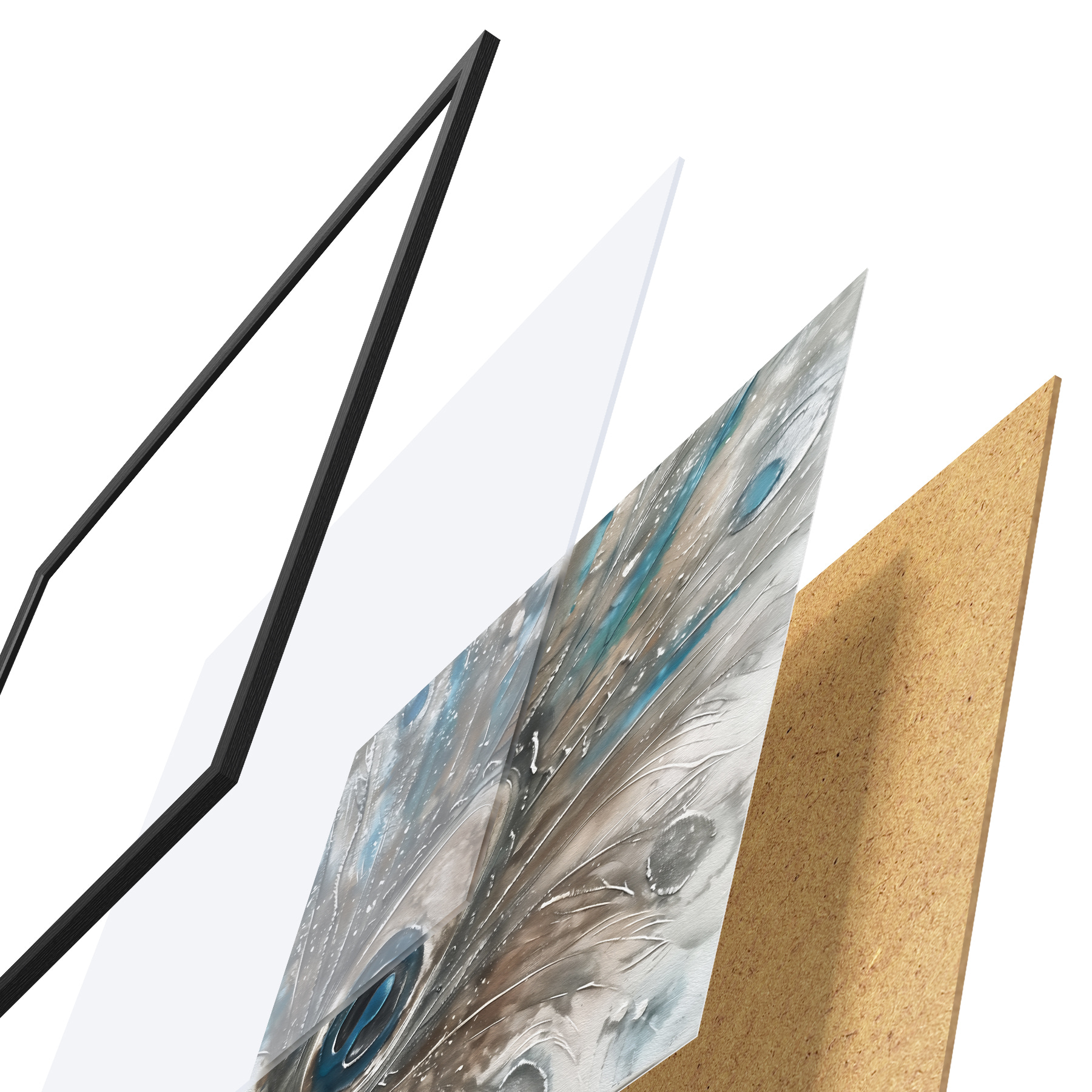 Plakatą sudaro rėmas, pleksiklas, atspausdintas vaizdas ir medžio drožlių plokštės pagrindas. Plakatą galima iš karto pakabinti ant sienos dėl kitoje pusėje esančių laikiklių.