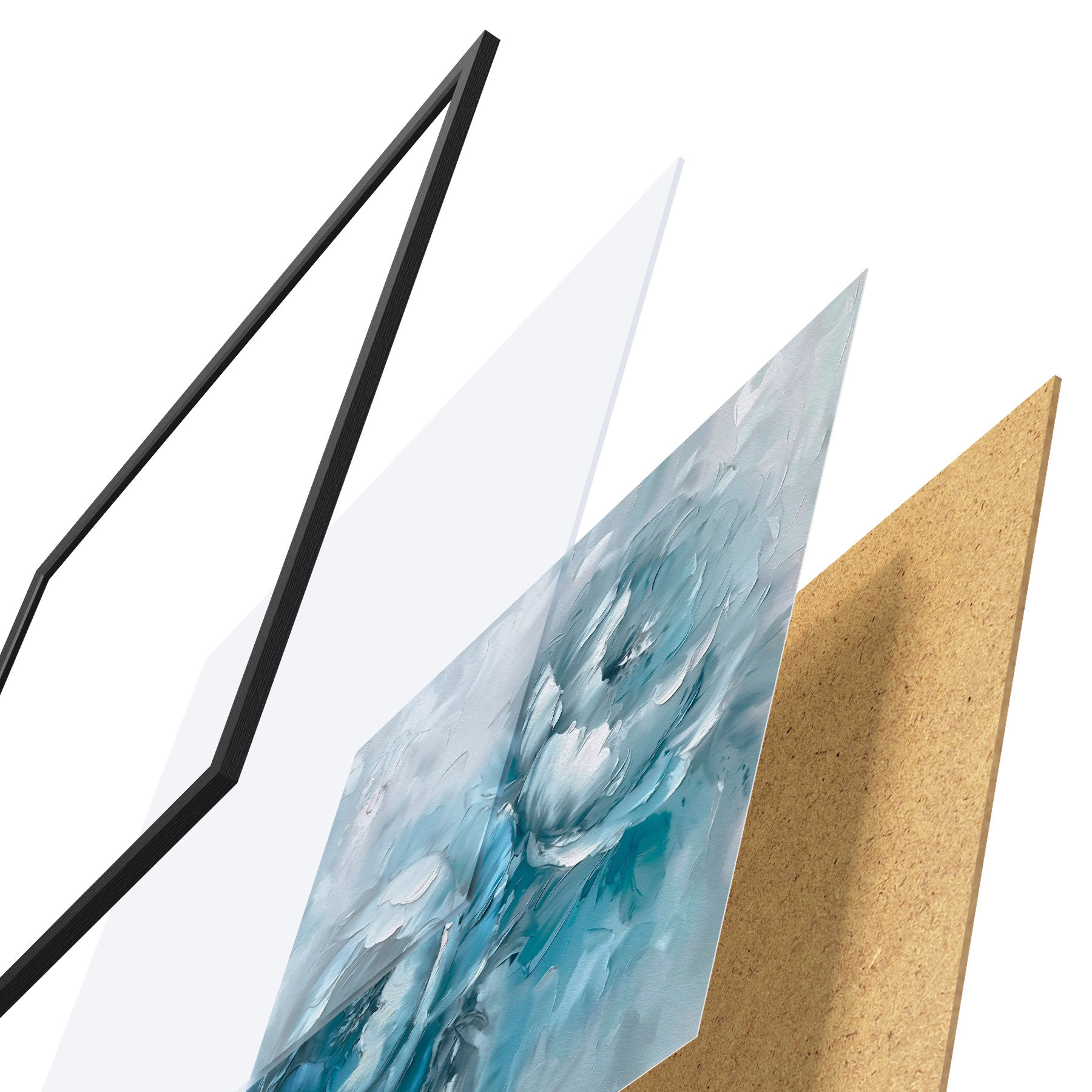 Plakatą sudaro rėmas, pleksiklas, atspausdintas vaizdas ir medžio drožlių plokštės pagrindas. Plakatą galima iš karto pakabinti ant sienos dėl kitoje pusėje esančių laikiklių.