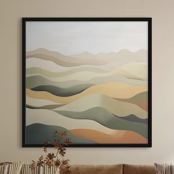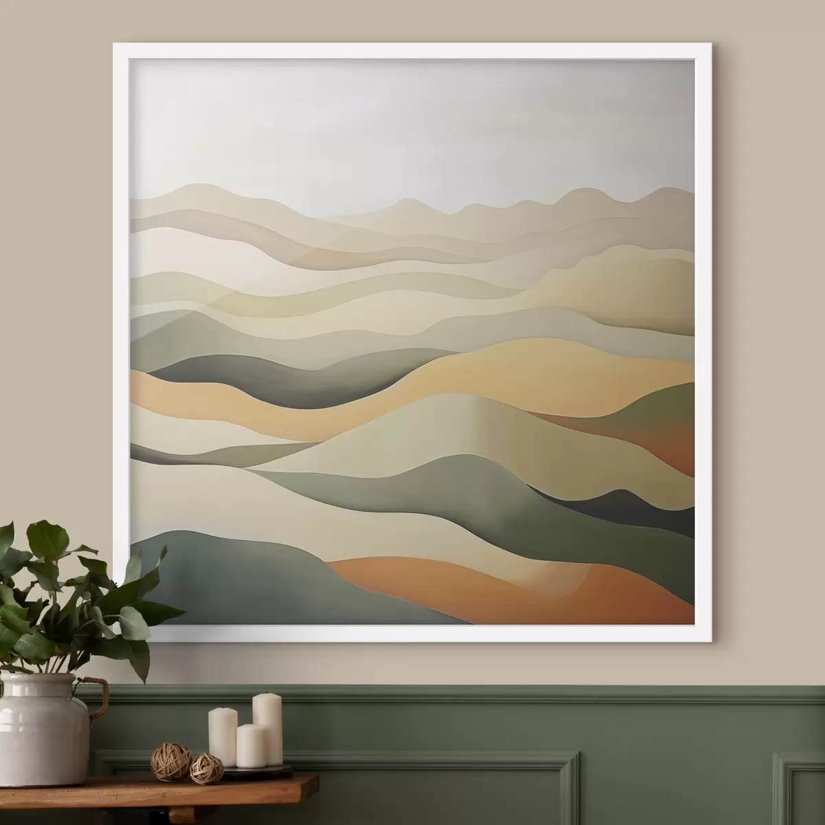 Plakatas Kalvos, abstraktus kraštovaizdis, guašas, žalia, ochra, sepija, pilka Ne f38952