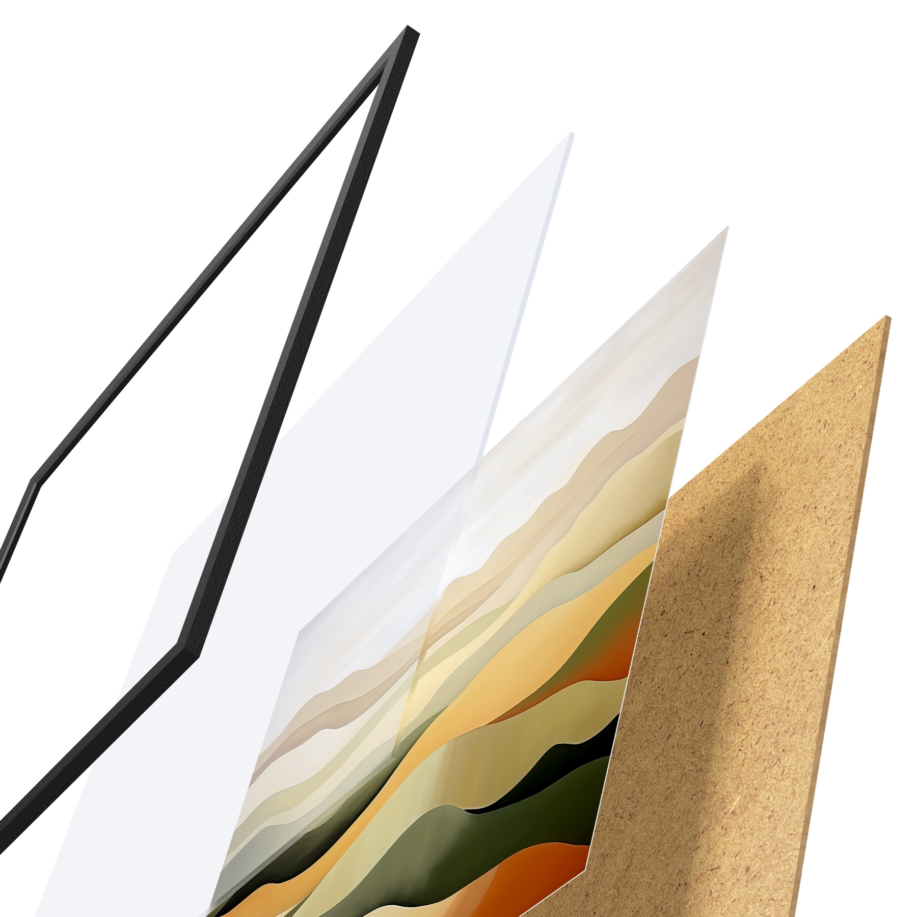 Plakatą sudaro rėmas, pleksiklas, atspausdintas vaizdas ir medžio drožlių plokštės pagrindas. Plakatą galima iš karto pakabinti ant sienos dėl kitoje pusėje esančių laikiklių.