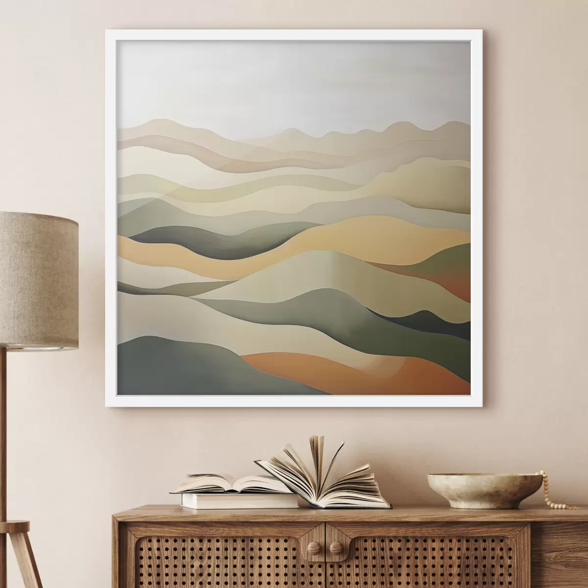 Plakatas Kalvos, abstraktus kraštovaizdis, guašas, žalia, ochra, sepija, pilka Ne f38952