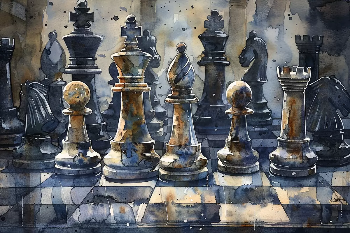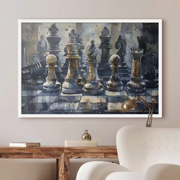 Plakatas Akvarele tapybos šachmatų iš metalo arba akmens vaizdas iš arti su detaliu dizainu ir faktūromis f38960
