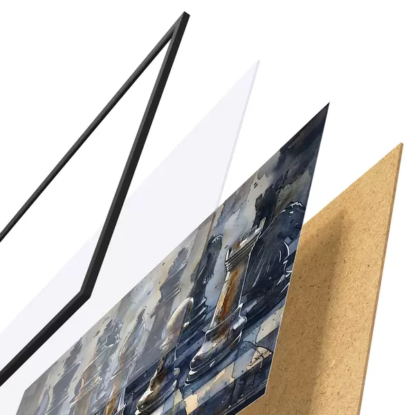 Plakatą sudaro rėmas, pleksiklas, atspausdintas vaizdas ir medžio drožlių plokštės pagrindas. Plakatą galima iš karto pakabinti ant sienos dėl kitoje pusėje esančių laikiklių.