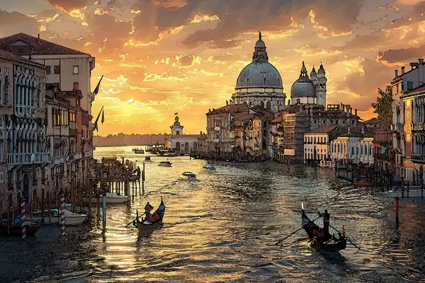 Plakatas Vaizdingas vaizdas į Didįjį kanalą Venecijoje, Italijoje saulėlydžio metu. f38963