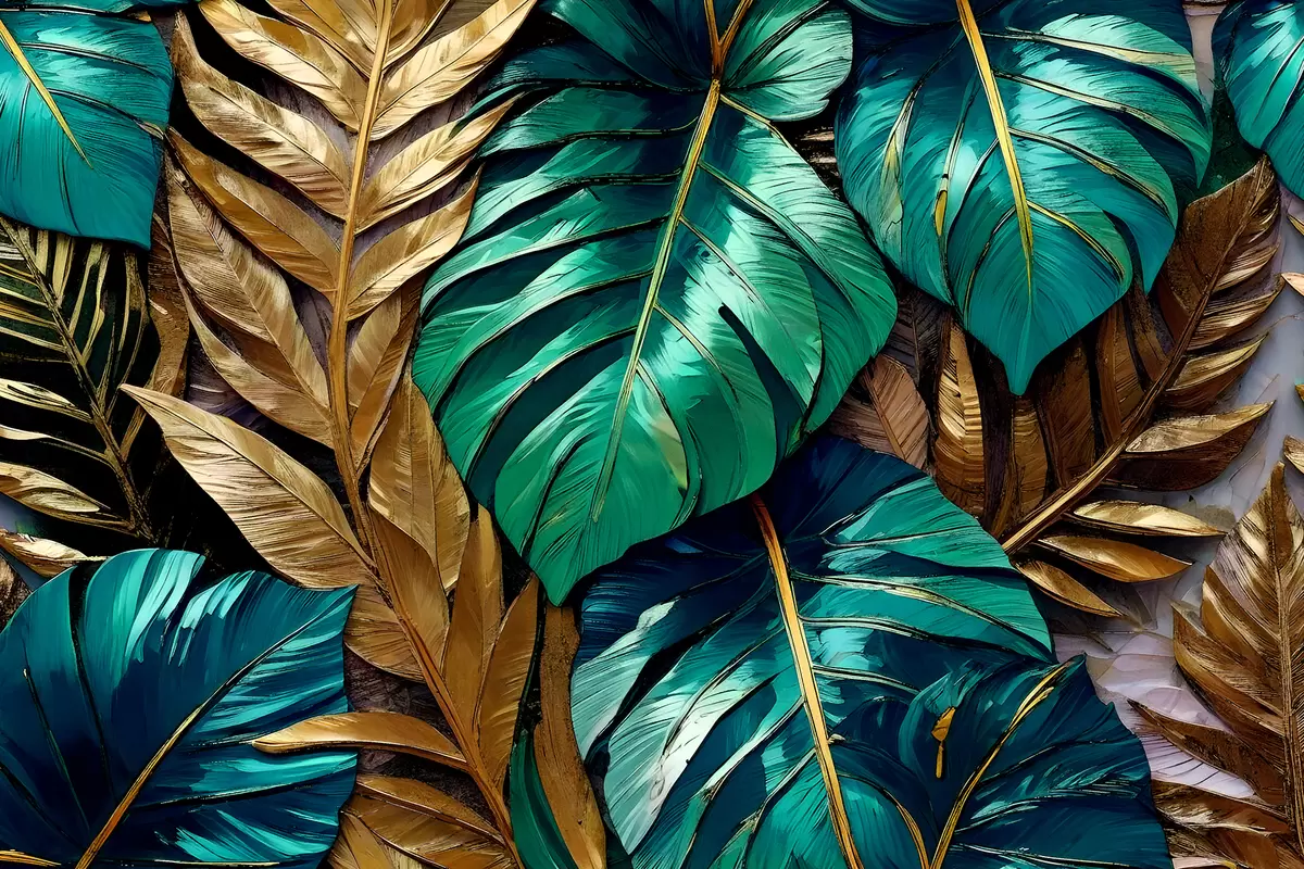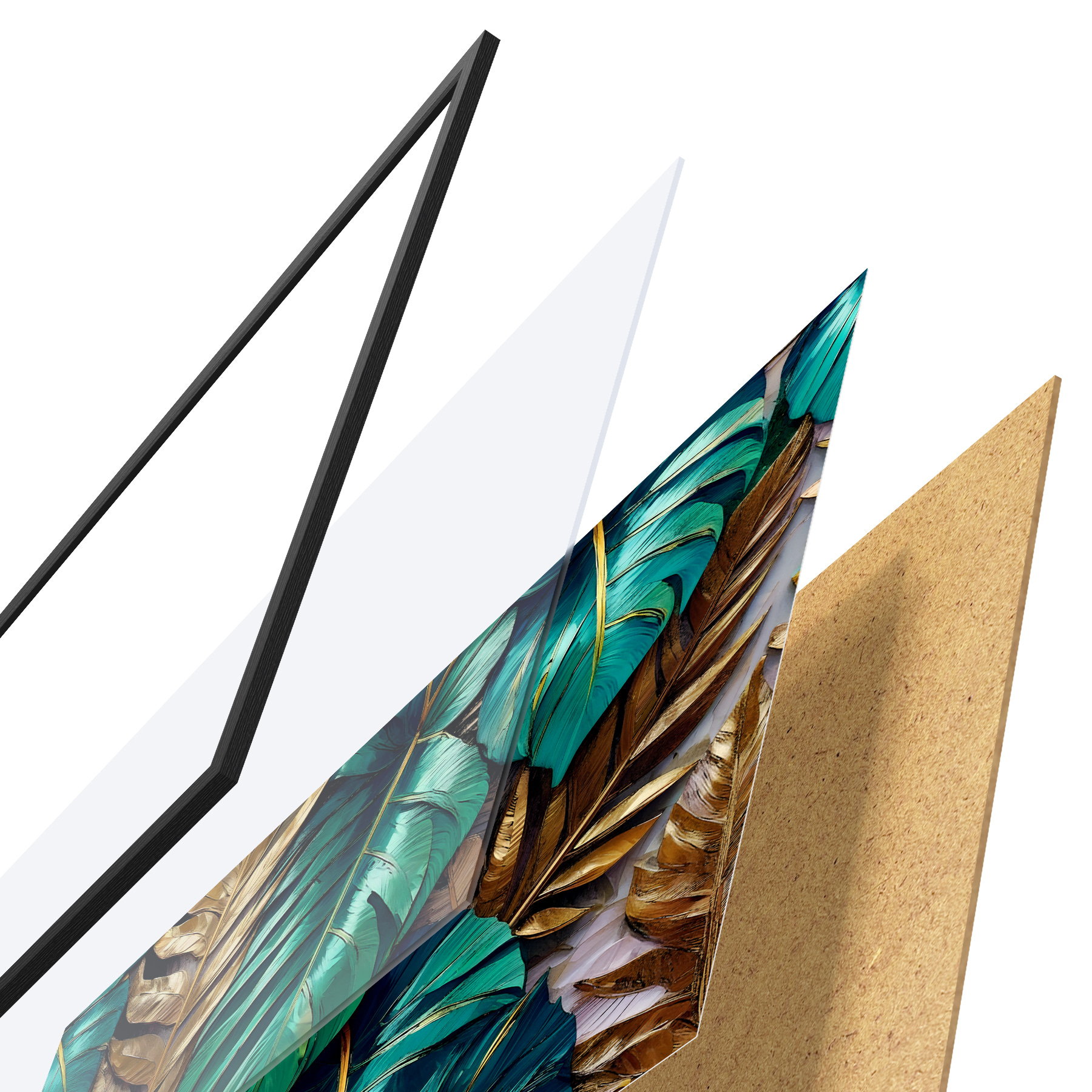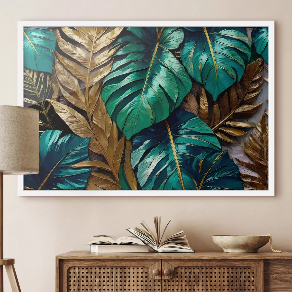 Plakatas Akrilo tapyba su ryškiais atogrąžų lapais žalios ir žalsvos spalvos atspalviais f38968