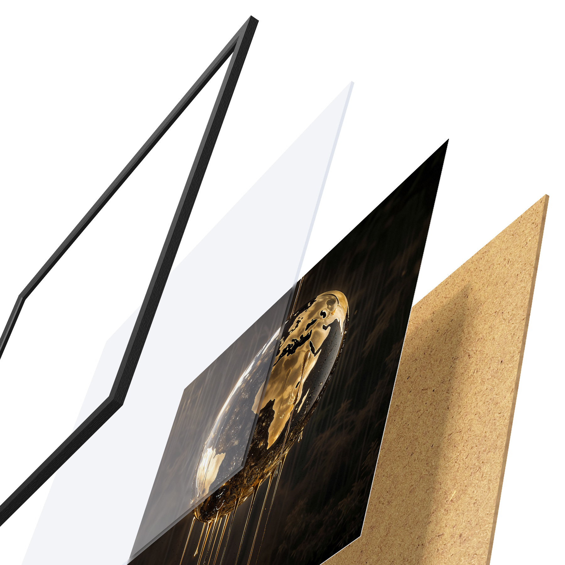 Plakatą sudaro rėmas, pleksiklas, atspausdintas vaizdas ir medžio drožlių plokštės pagrindas. Plakatą galima iš karto pakabinti ant sienos dėl kitoje pusėje esančių laikiklių.