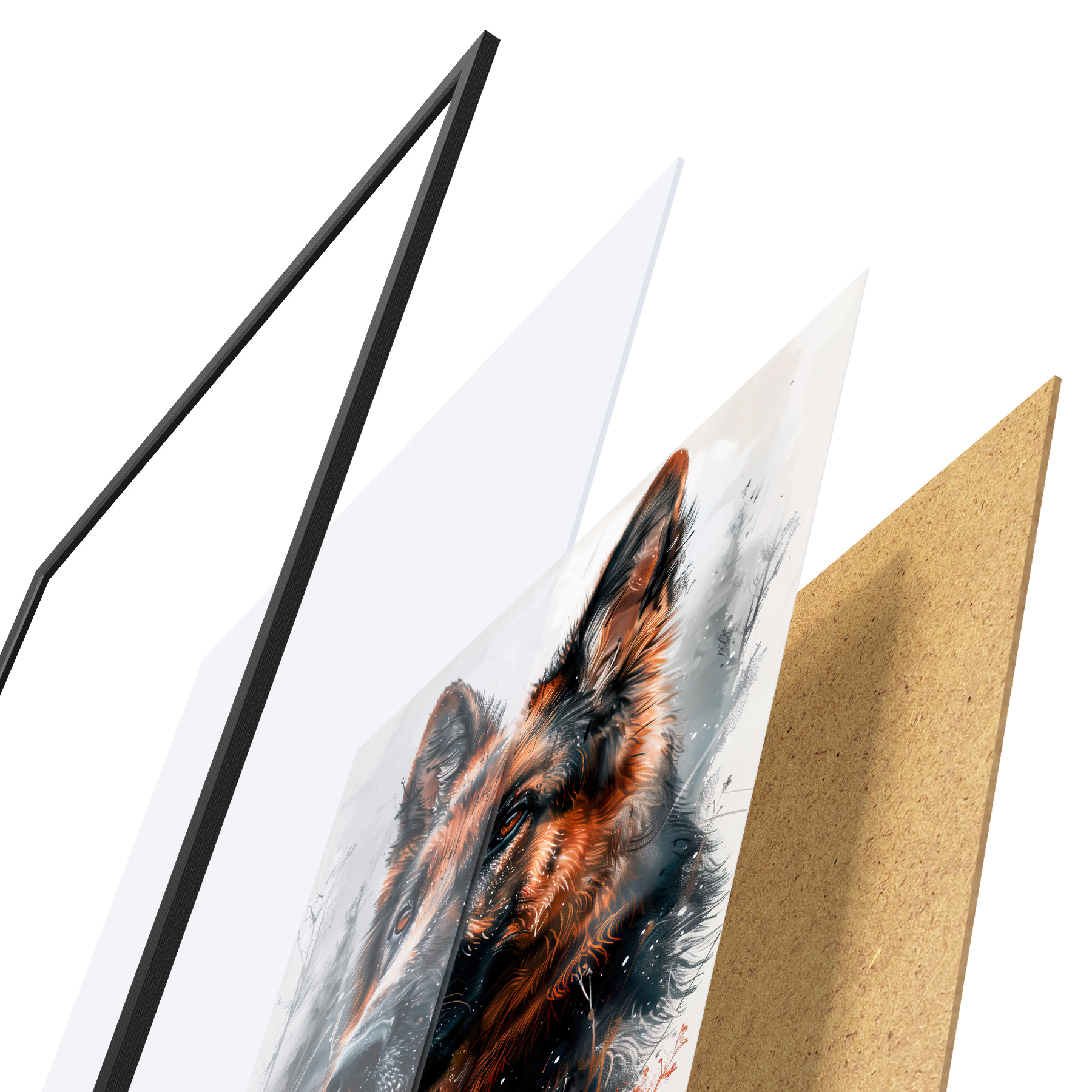 Plakatą sudaro rėmas, pleksiklas, atspausdintas vaizdas ir medžio drožlių plokštės pagrindas. Plakatą galima iš karto pakabinti ant sienos dėl kitoje pusėje esančių laikiklių.