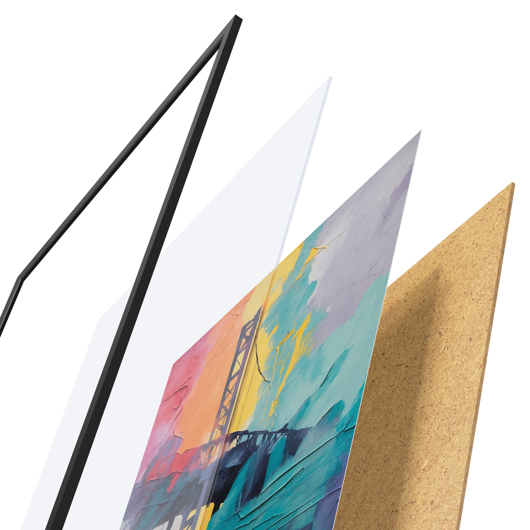 Plakatą sudaro rėmas, pleksiklas, atspausdintas vaizdas ir medžio drožlių plokštės pagrindas. Plakatą galima iš karto pakabinti ant sienos dėl kitoje pusėje esančių laikiklių.