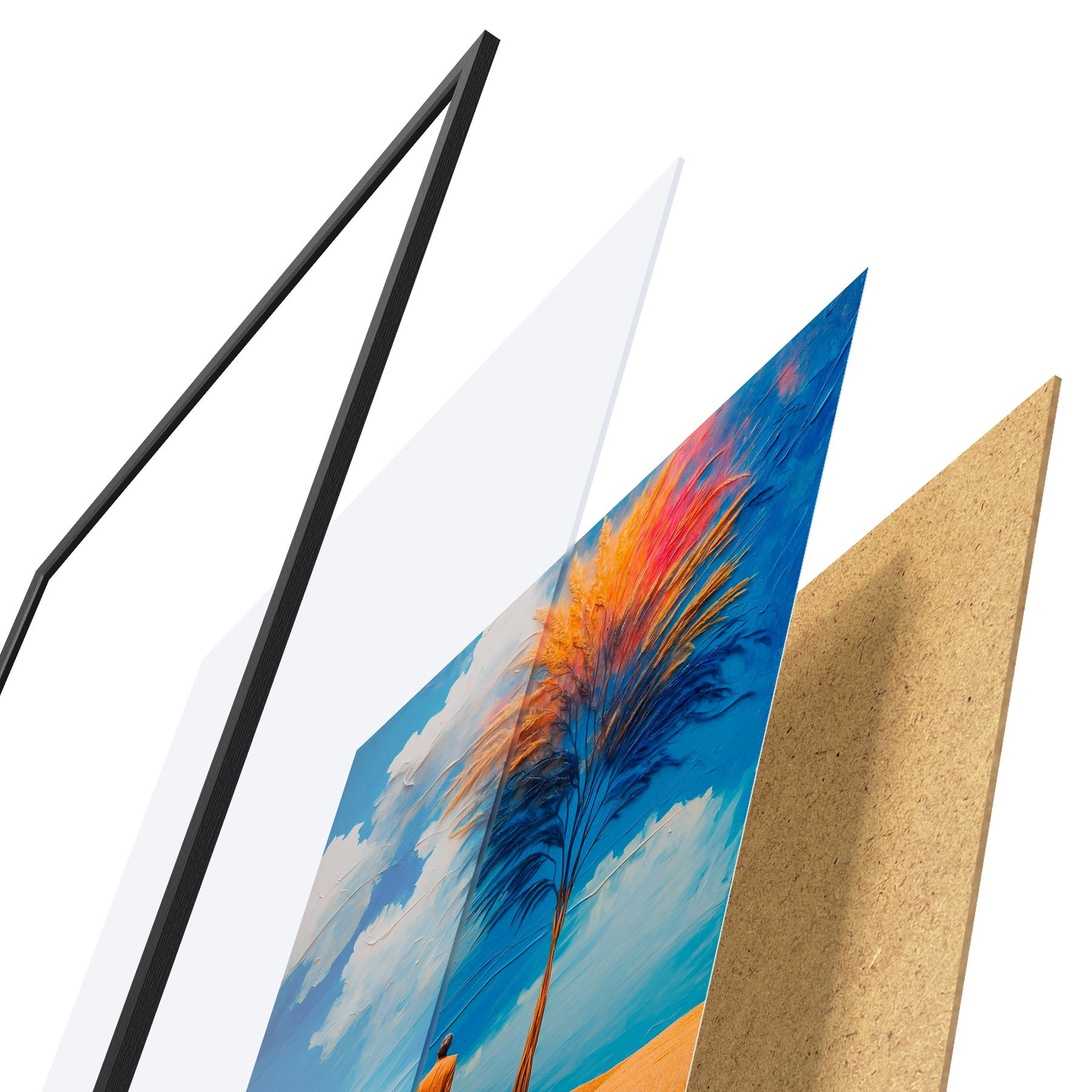 Plakatą sudaro rėmas, pleksiklas, atspausdintas vaizdas ir medžio drožlių plokštės pagrindas. Plakatą galima iš karto pakabinti ant sienos dėl kitoje pusėje esančių laikiklių.