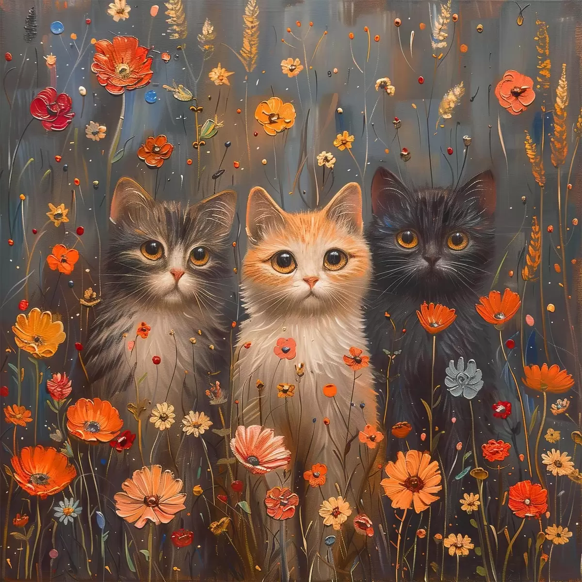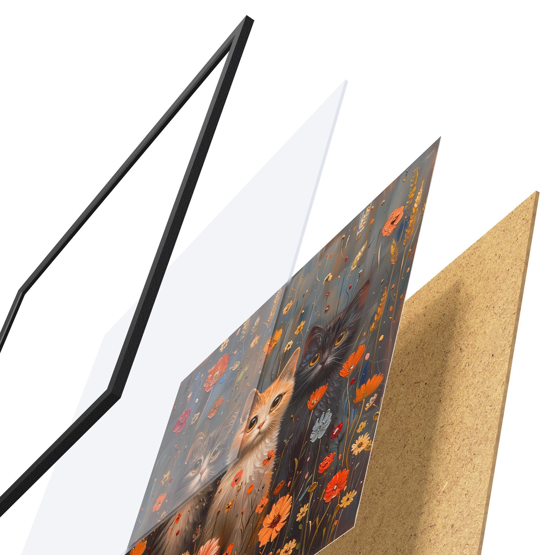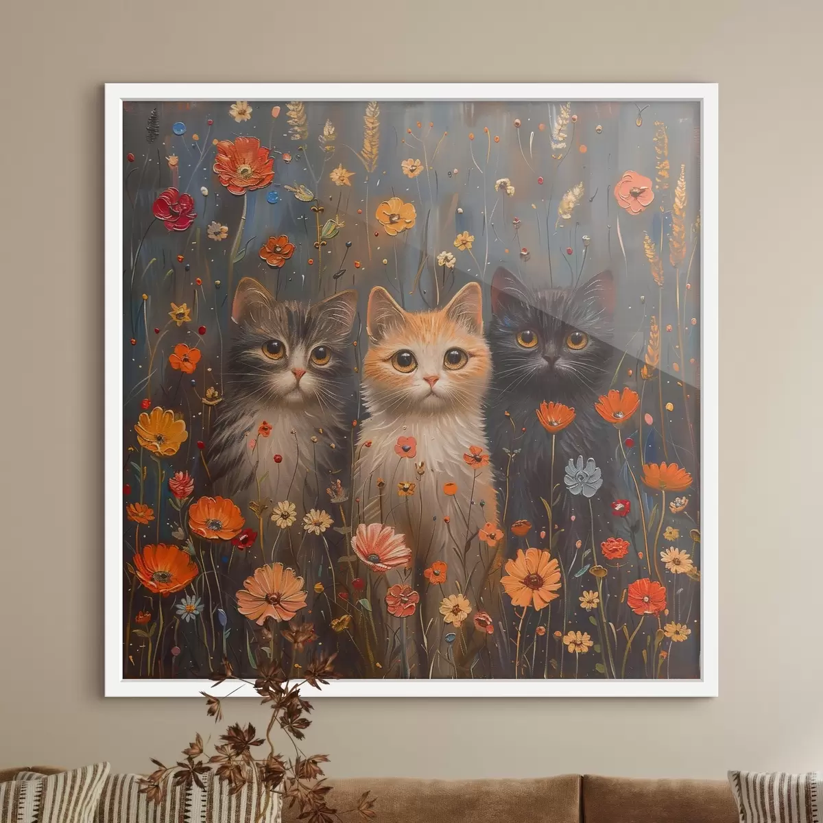 Plakatas Trys žavios katės tarp žiedų Ne f39012