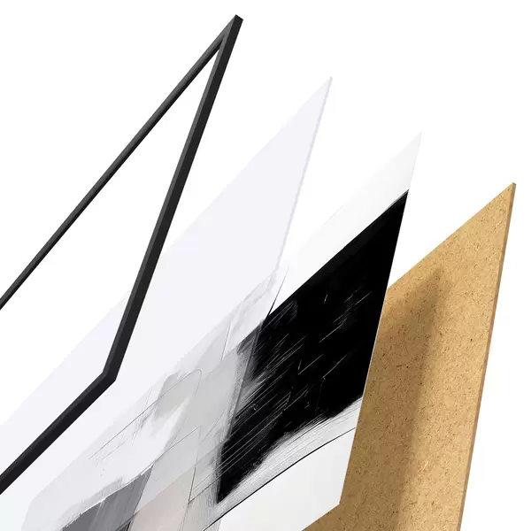 Plakatą sudaro rėmas, pleksiklas, atspausdintas vaizdas ir medžio drožlių plokštės pagrindas. Plakatą galima iš karto pakabinti ant sienos dėl kitoje pusėje esančių laikiklių.