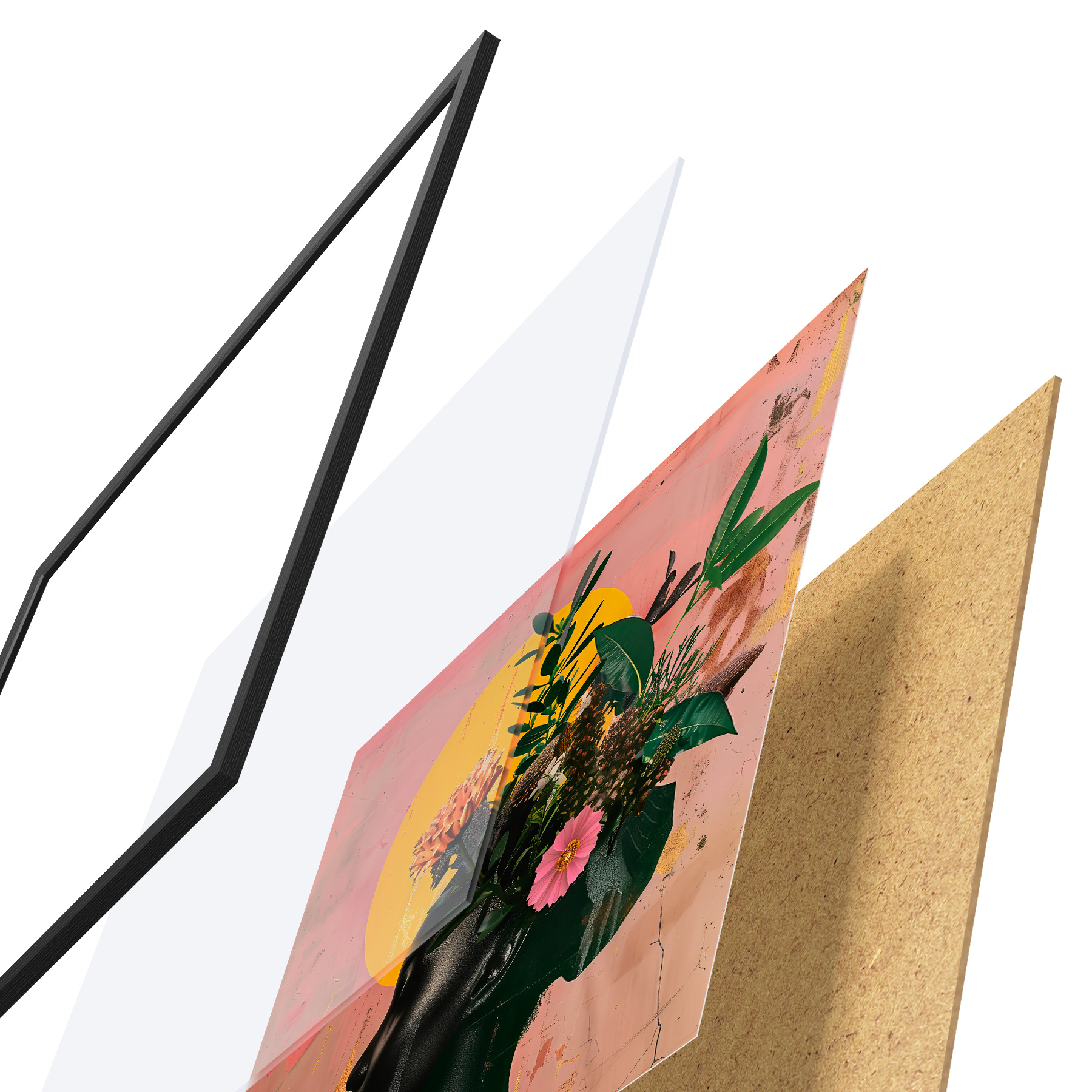 Plakatą sudaro rėmas, pleksiklas, atspausdintas vaizdas ir medžio drožlių plokštės pagrindas. Plakatą galima iš karto pakabinti ant sienos dėl kitoje pusėje esančių laikiklių.