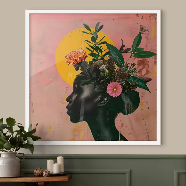 Plakatas Mergina su gėlėmis ir lapais ant galvos f39049