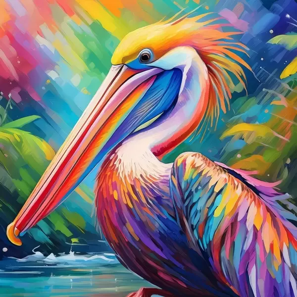 Plakatas Ryškus pelikanas spalvingoje aplinkoje Ne f39054