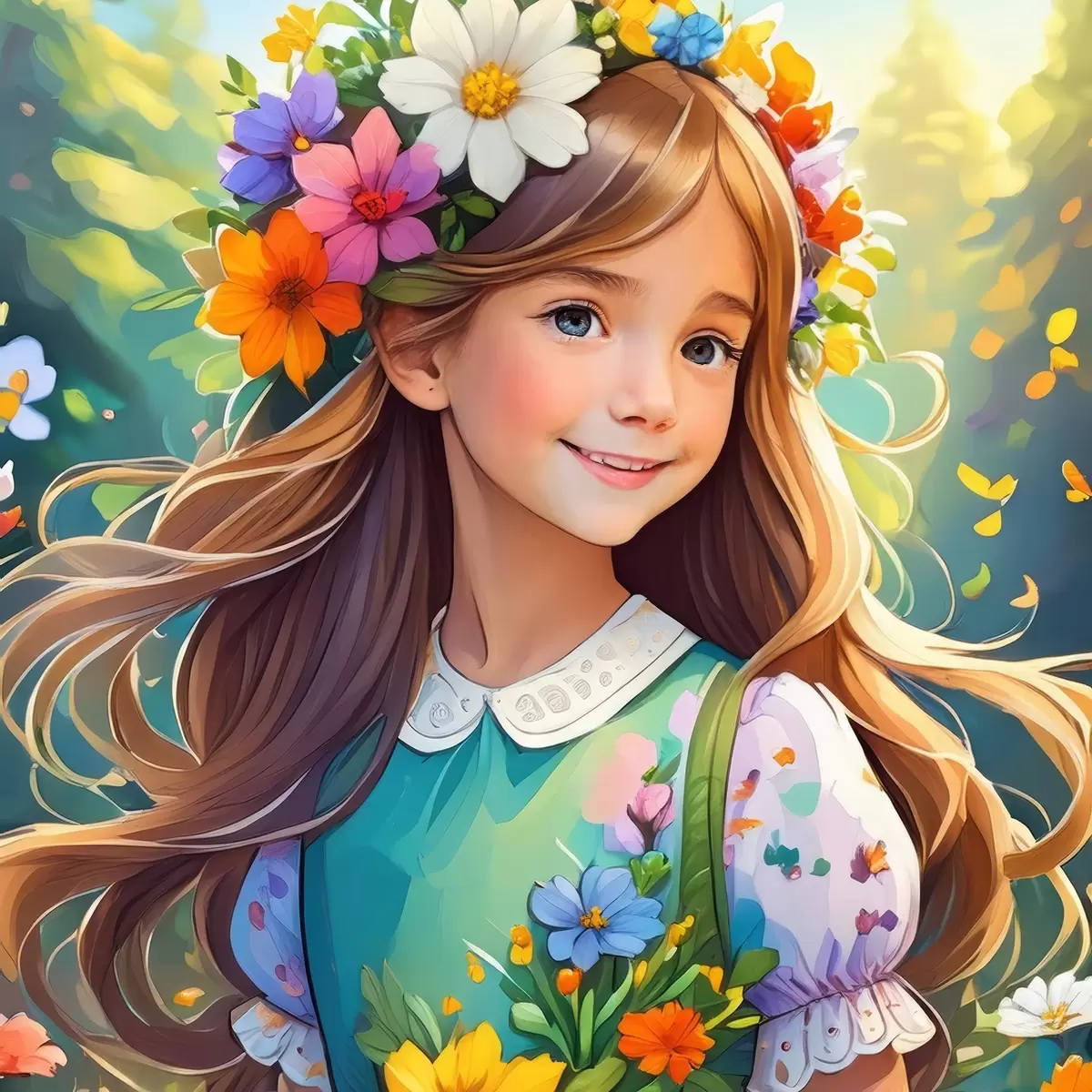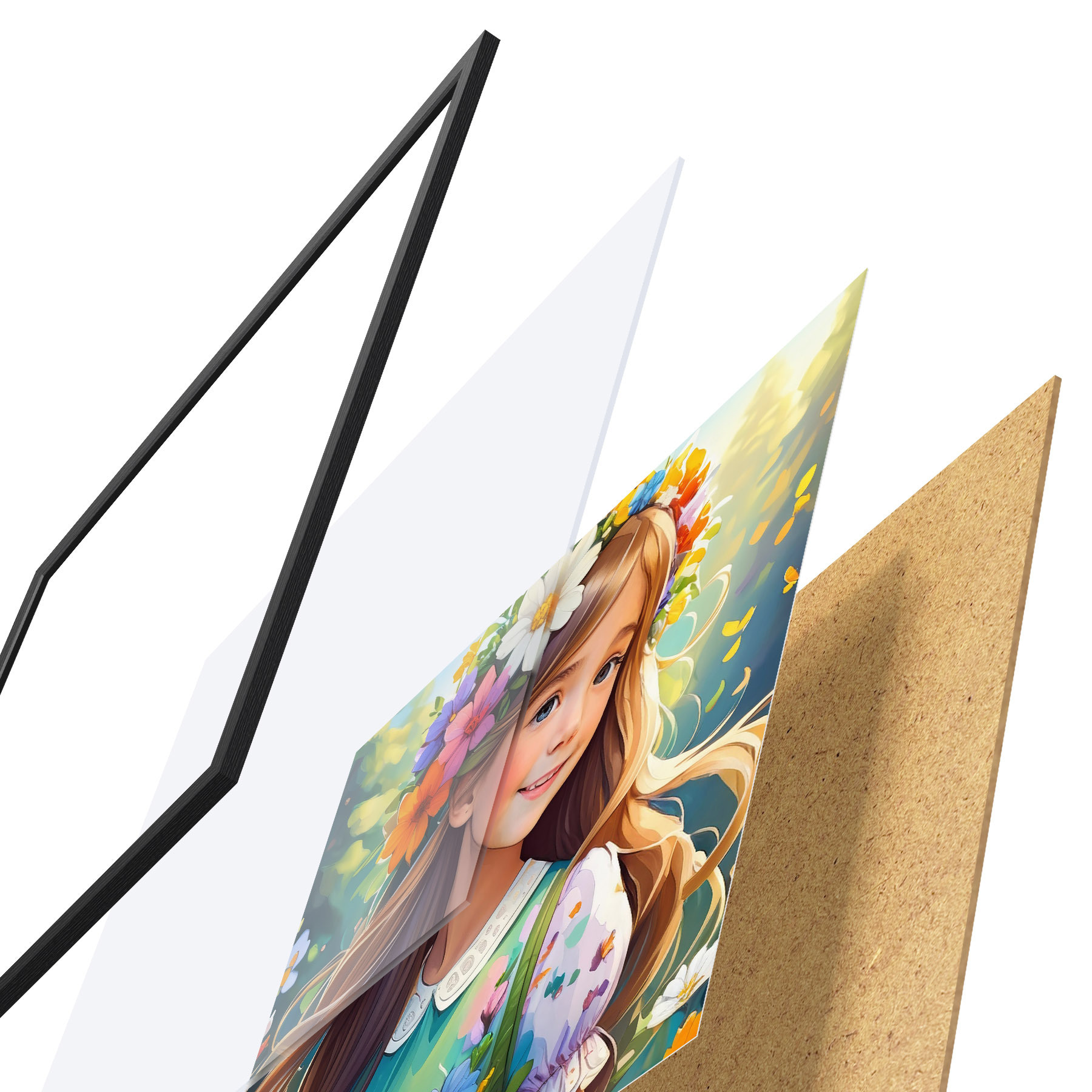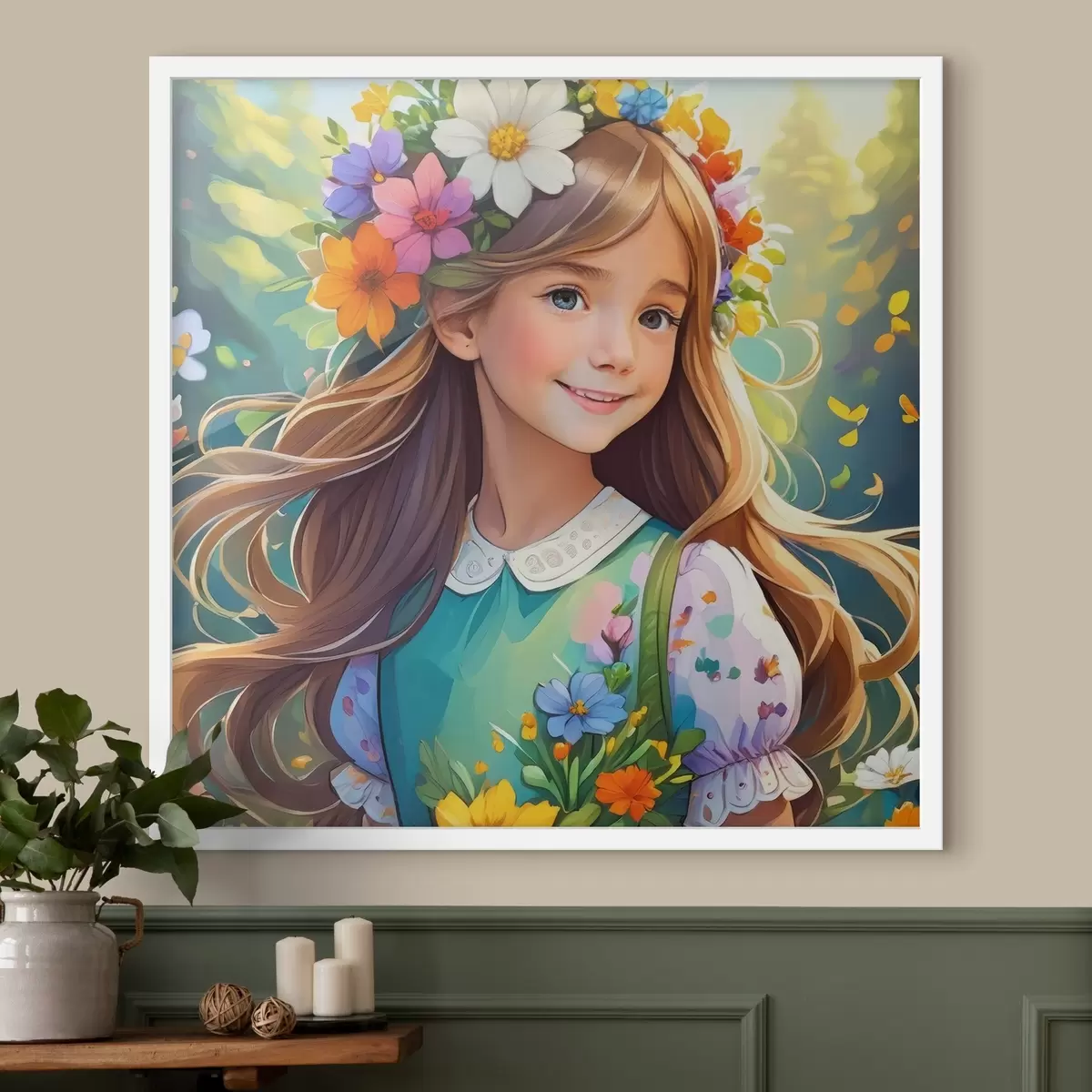 Plakatas Džiaugsminga mergaitė tarp žydinčių gėlių f39058
