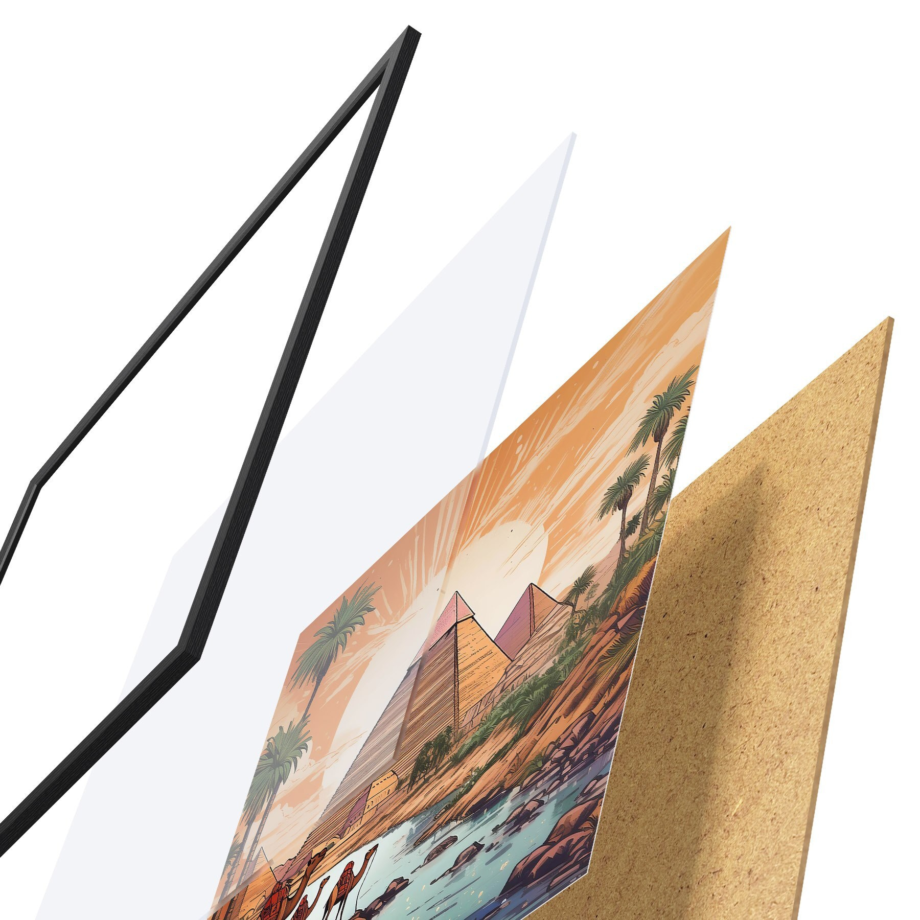 Plakatą sudaro rėmas, pleksiklas, atspausdintas vaizdas ir medžio drožlių plokštės pagrindas. Plakatą galima iš karto pakabinti ant sienos dėl kitoje pusėje esančių laikiklių.
