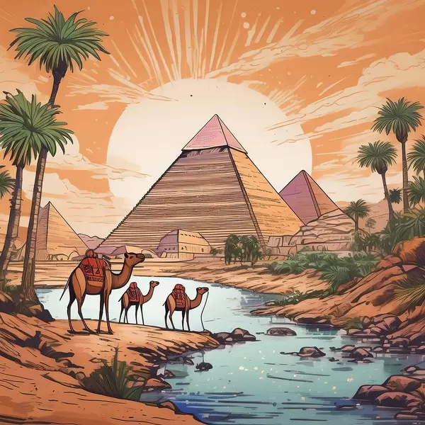 Plakatas Piramidės po ryškiu saulėlydžiu f39060