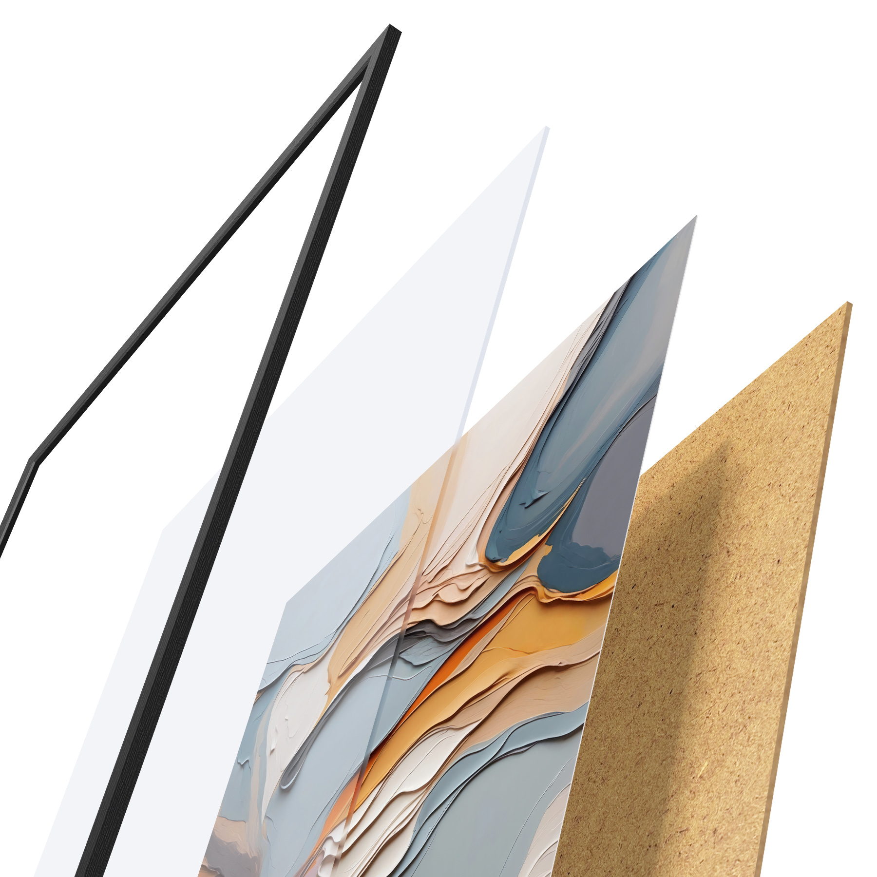 Plakatą sudaro rėmas, pleksiklas, atspausdintas vaizdas ir medžio drožlių plokštės pagrindas. Plakatą galima iš karto pakabinti ant sienos dėl kitoje pusėje esančių laikiklių.
