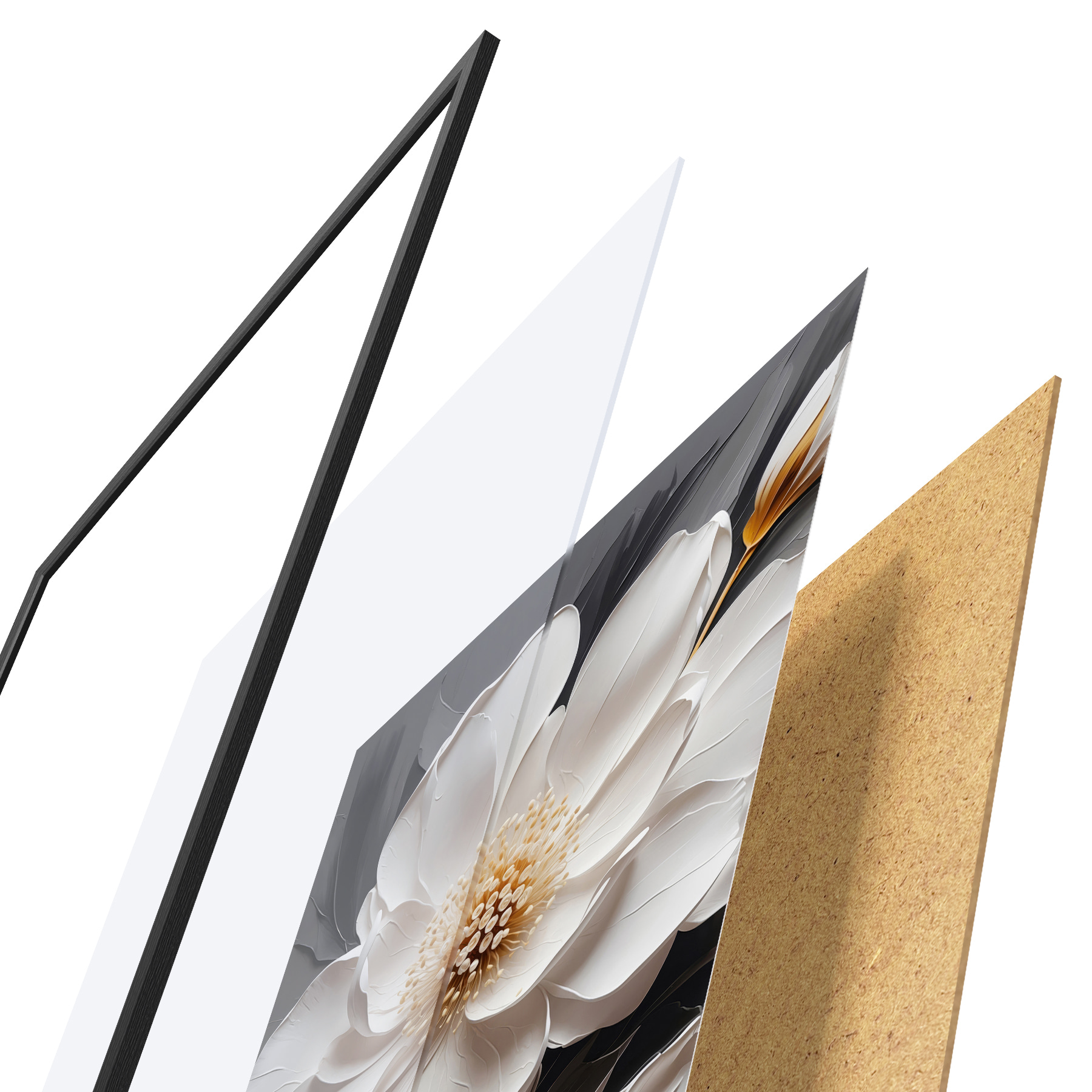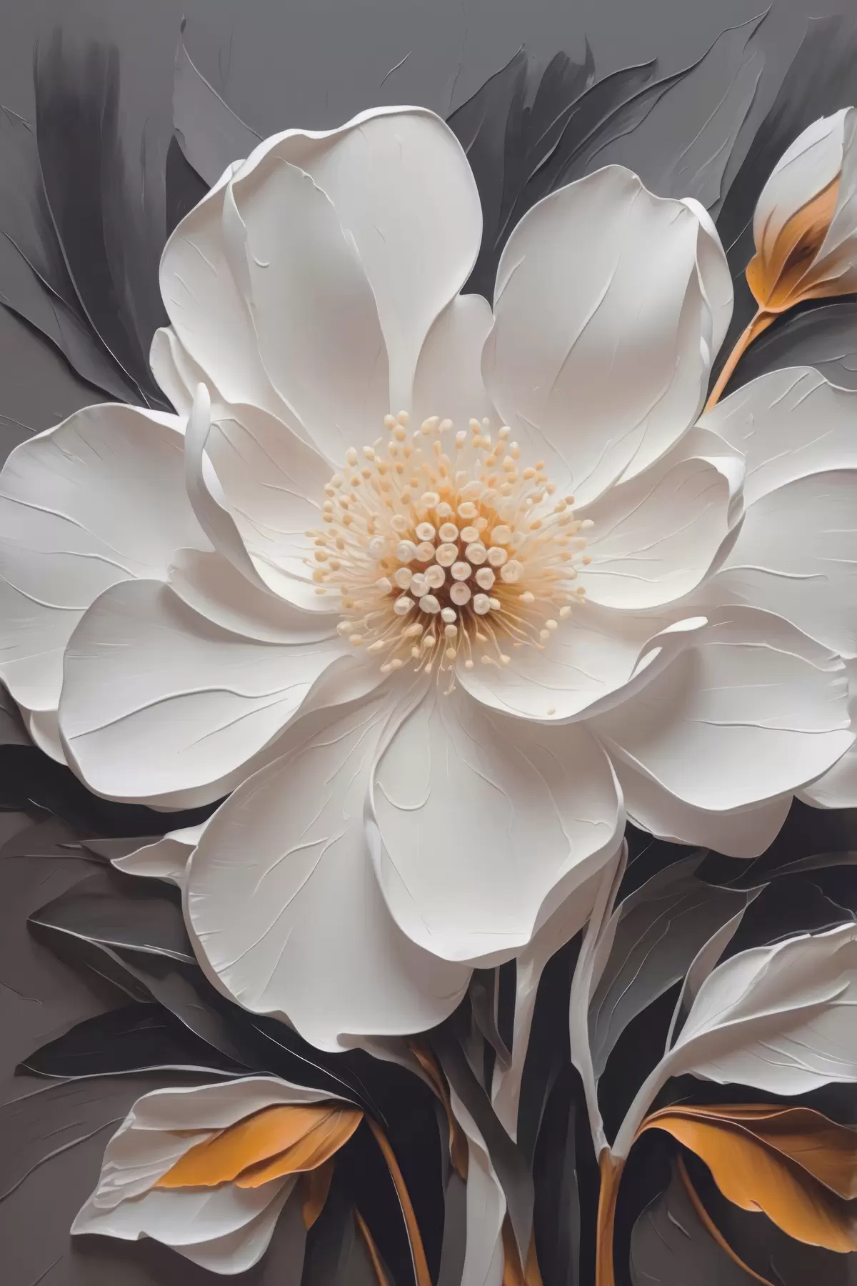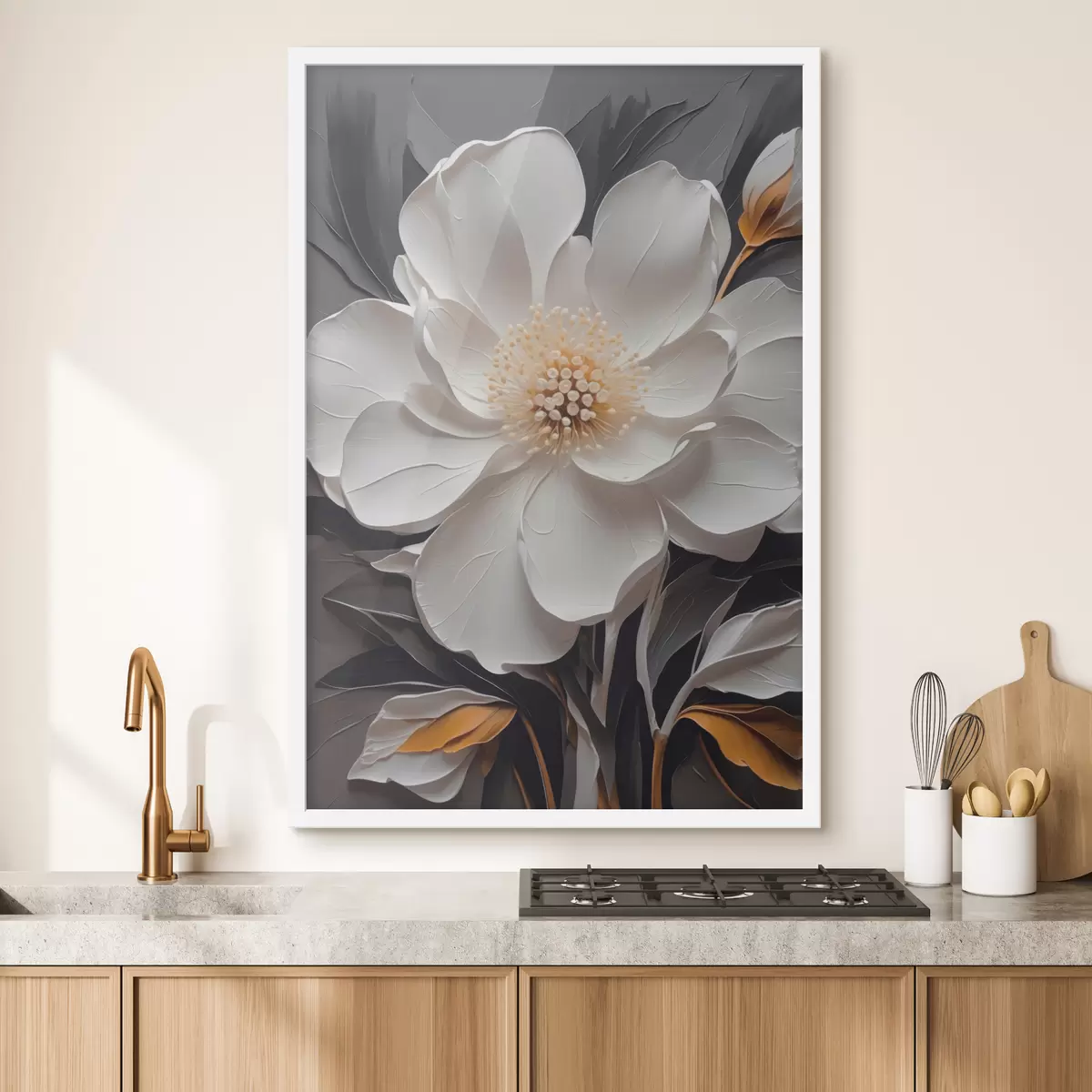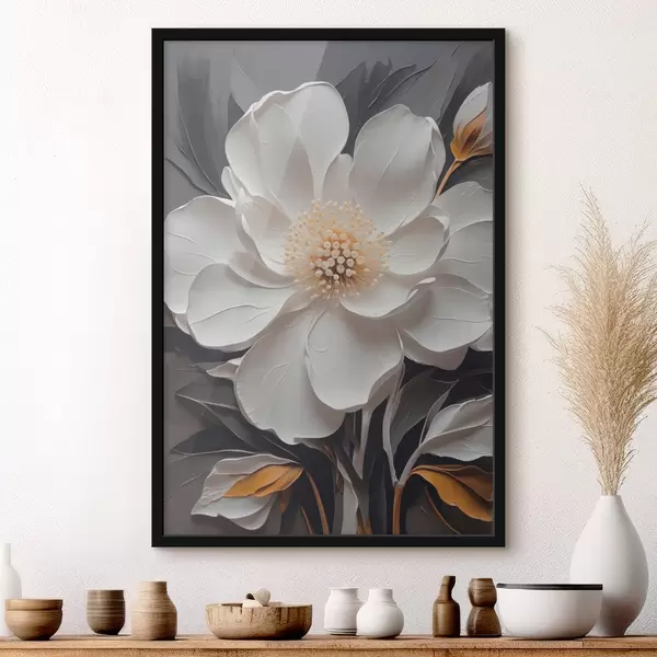 Plakatas Balta gėlė pilkame fone Ne f39065