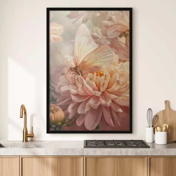Plakatas Subtilus drugelis žydinčių gėlių viršūnėje f39070