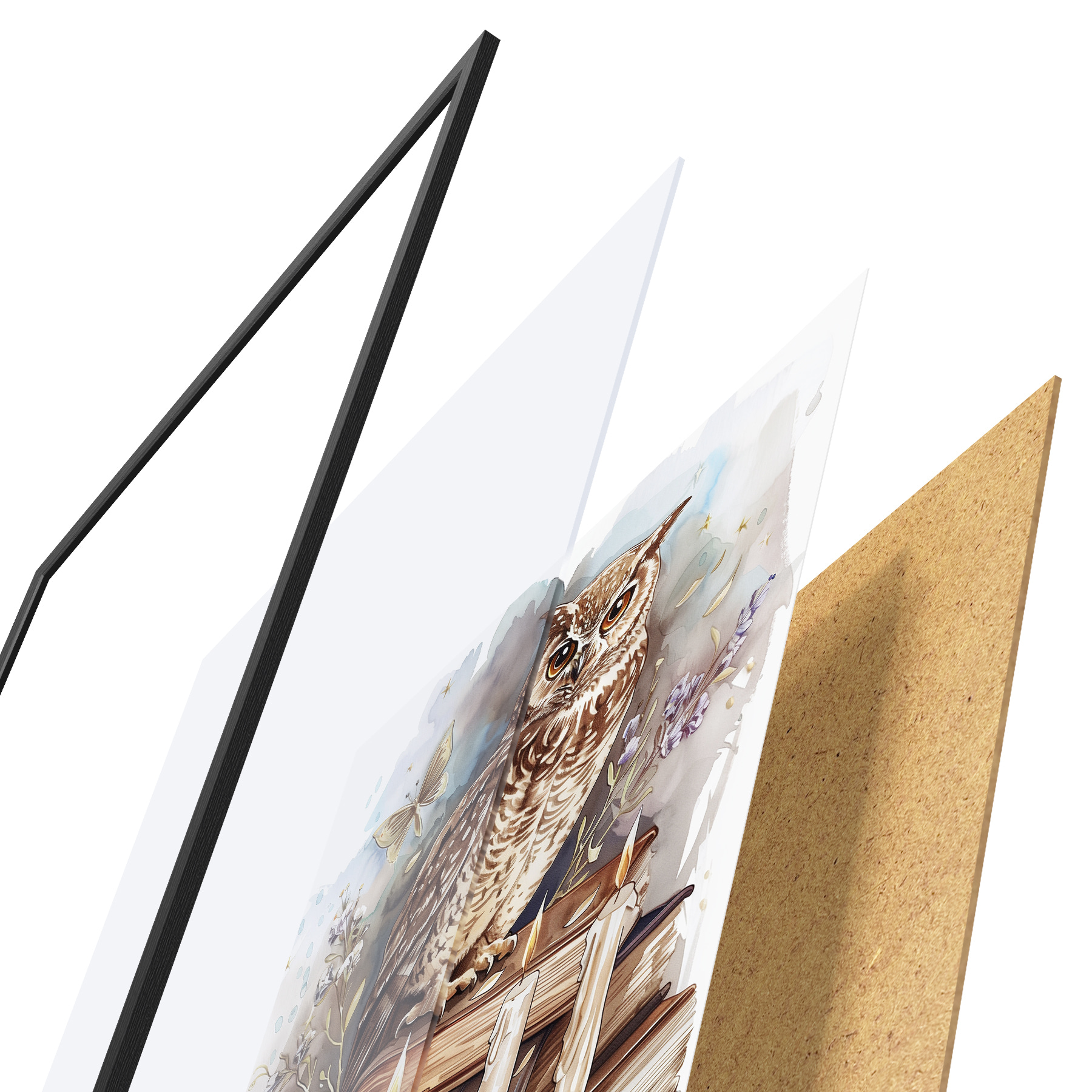 Plakatą sudaro rėmas, pleksiklas, atspausdintas vaizdas ir medžio drožlių plokštės pagrindas. Plakatą galima iš karto pakabinti ant sienos dėl kitoje pusėje esančių laikiklių.