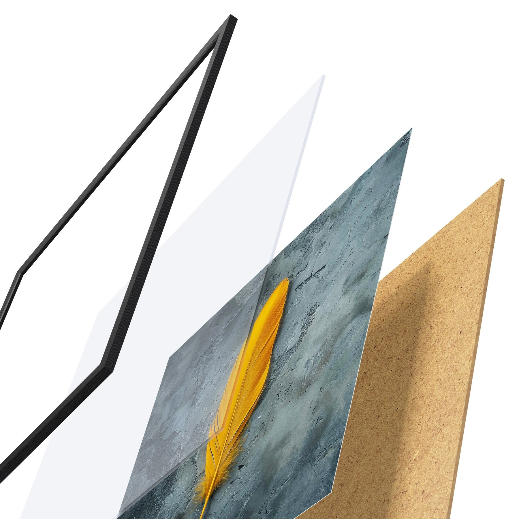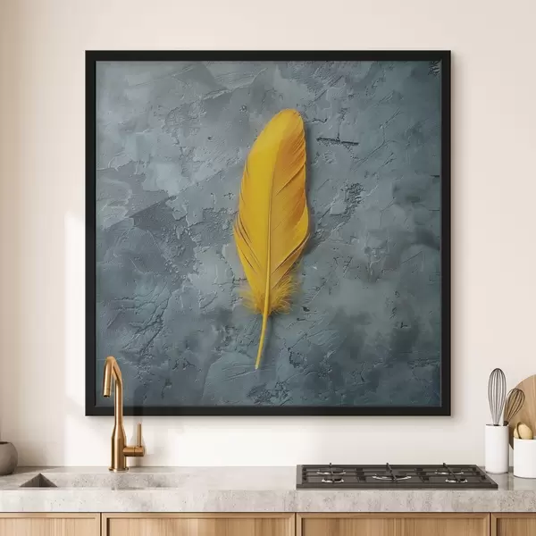 Plakatas Ryškios geltonos spalvos plunksnos ant tekstūruoto paviršiaus Ne f39081
