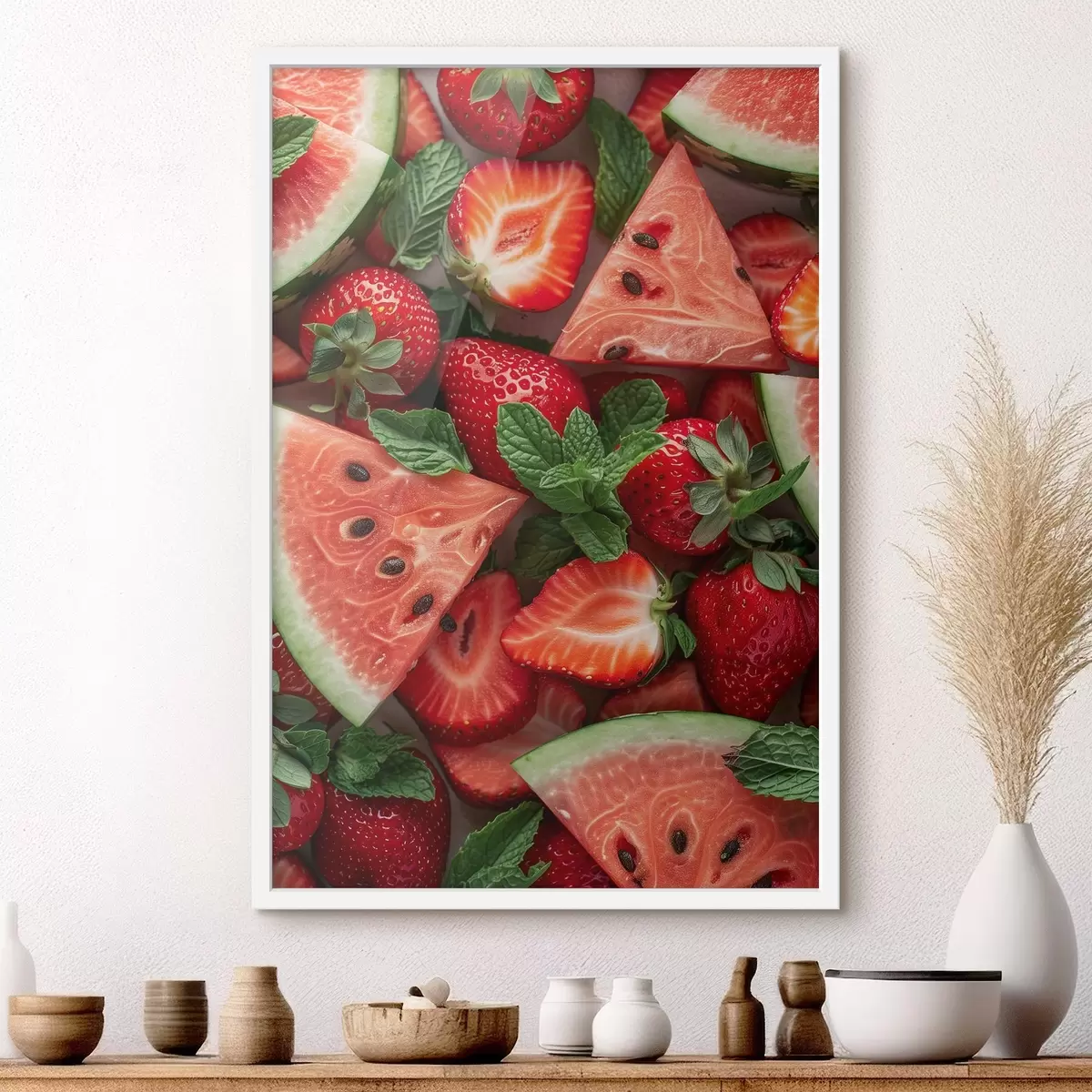 Plakatas Šviežių vaisių mišrainė su ryškiomis spalvomis f39087