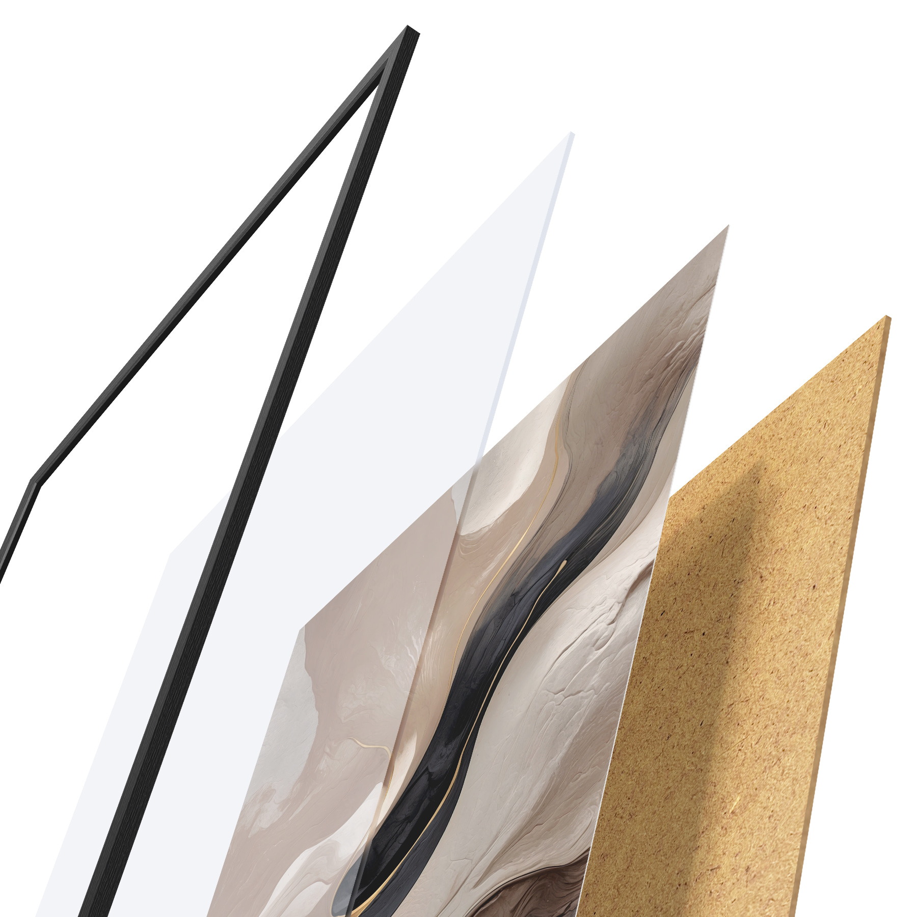 Plakatą sudaro rėmas, pleksiklas, atspausdintas vaizdas ir medžio drožlių plokštės pagrindas. Plakatą galima iš karto pakabinti ant sienos dėl kitoje pusėje esančių laikiklių.
