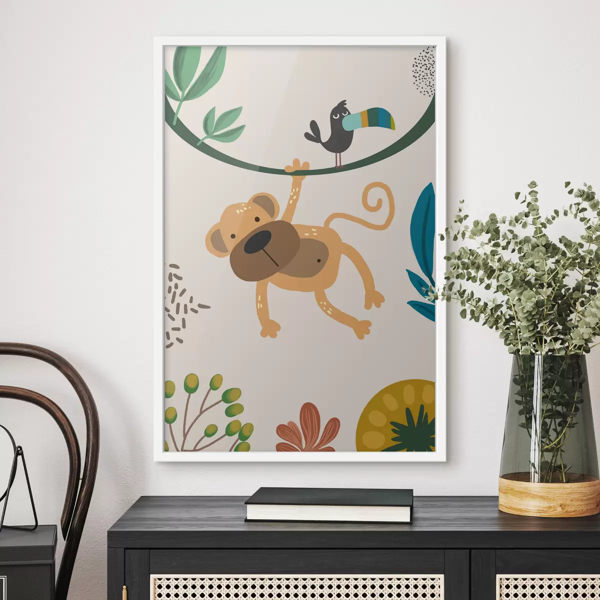 Plakatas Safari stiliaus beždžionė džiunglėse, boho Ne f39094