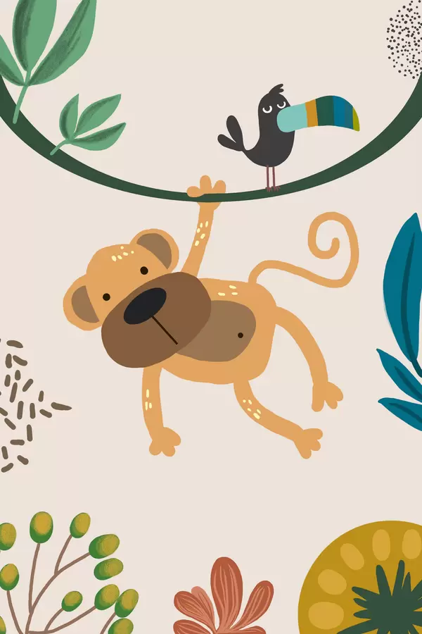 Plakatas Safari stiliaus beždžionė džiunglėse, boho f39094