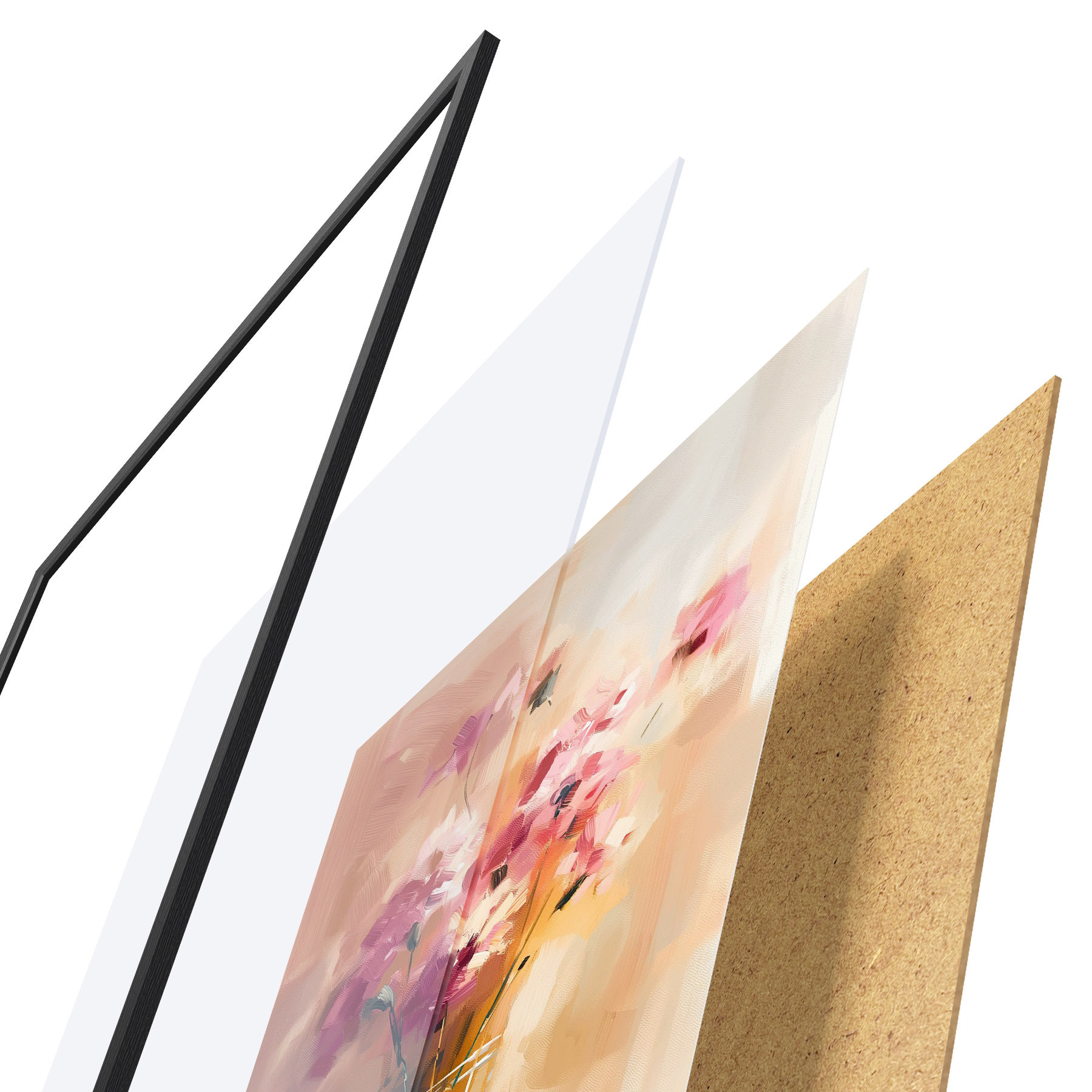 Plakatą sudaro rėmas, pleksiklas, atspausdintas vaizdas ir medžio drožlių plokštės pagrindas. Plakatą galima iš karto pakabinti ant sienos dėl kitoje pusėje esančių laikiklių.