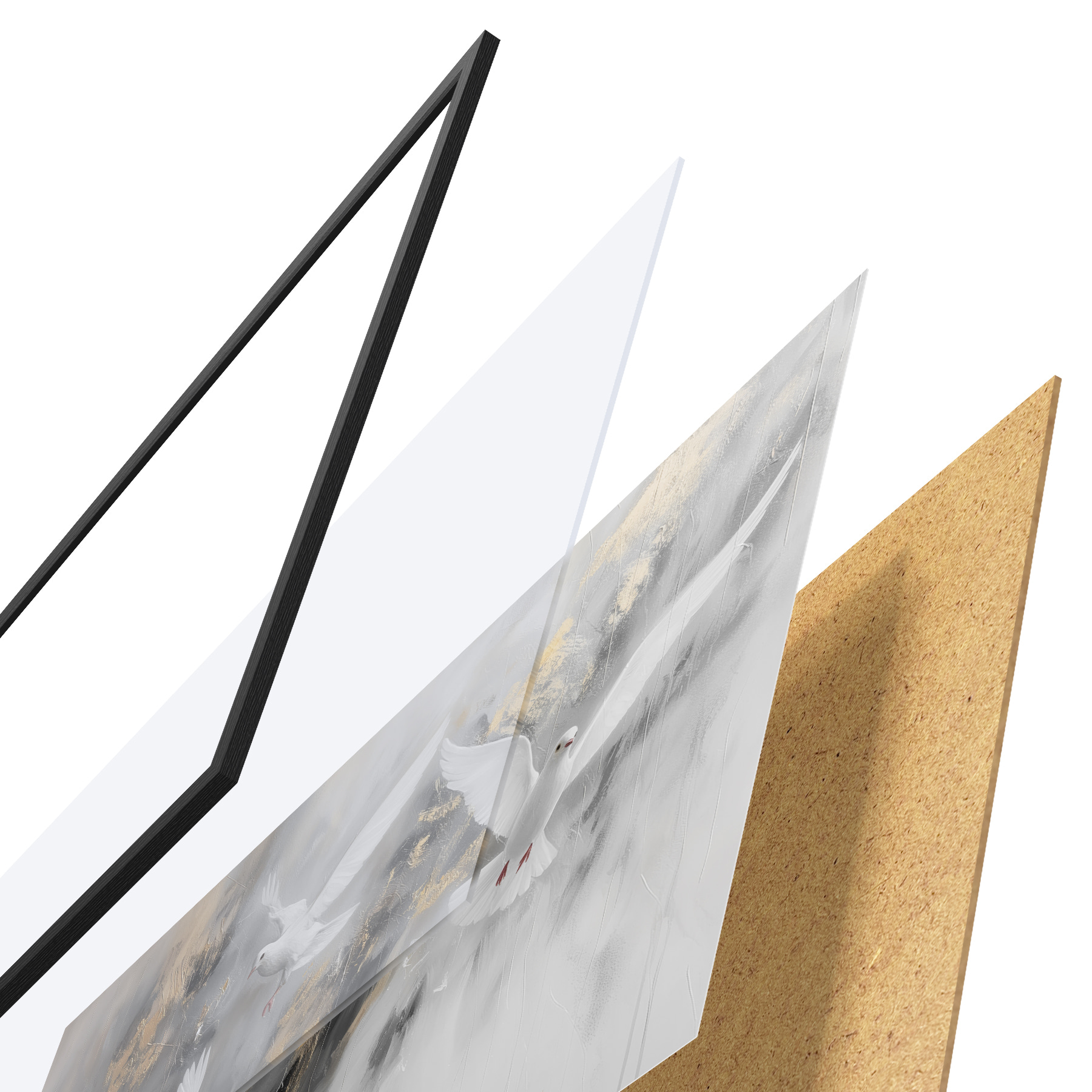 Plakatas Balti balandžiai pilkame fone Ne f39101