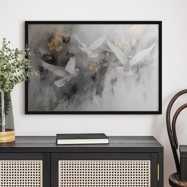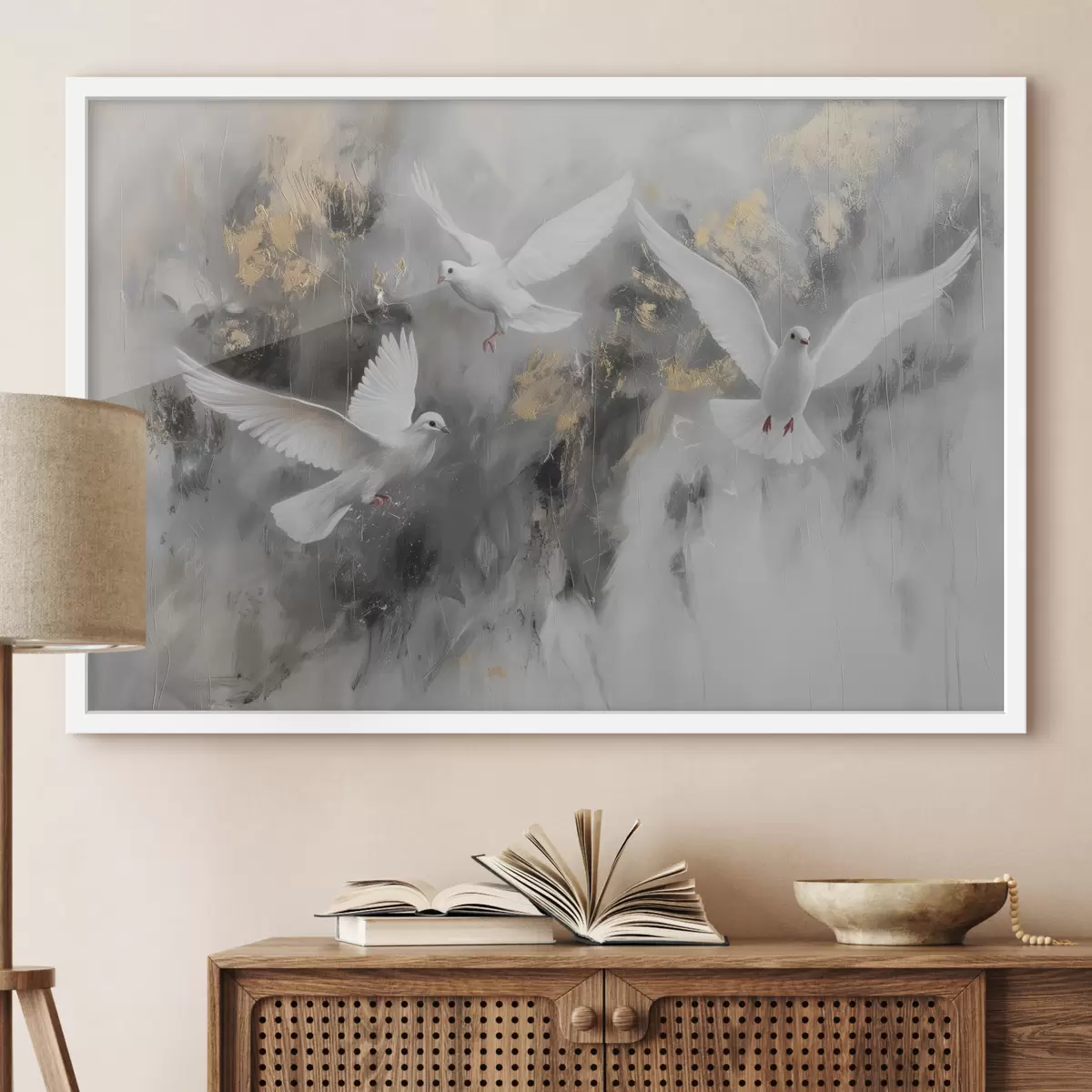 Plakatas Balti balandžiai pilkame fone Ne f39101