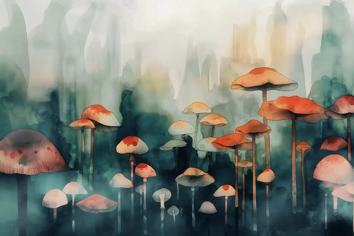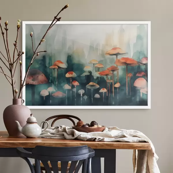 Plakatas Įnoringas spalvingų grybų miškas f39102