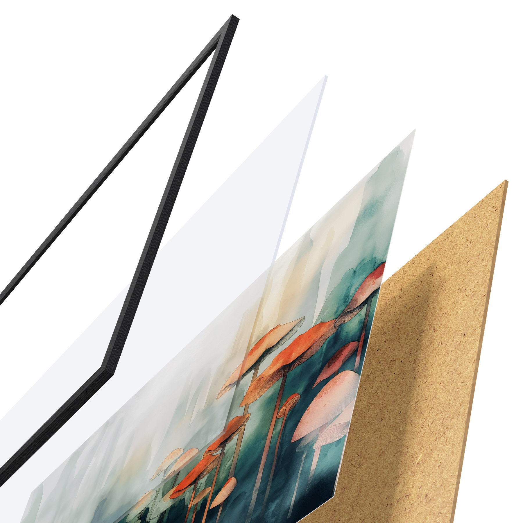 Plakatą sudaro rėmas, pleksiklas, atspausdintas vaizdas ir medžio drožlių plokštės pagrindas. Plakatą galima iš karto pakabinti ant sienos dėl kitoje pusėje esančių laikiklių.